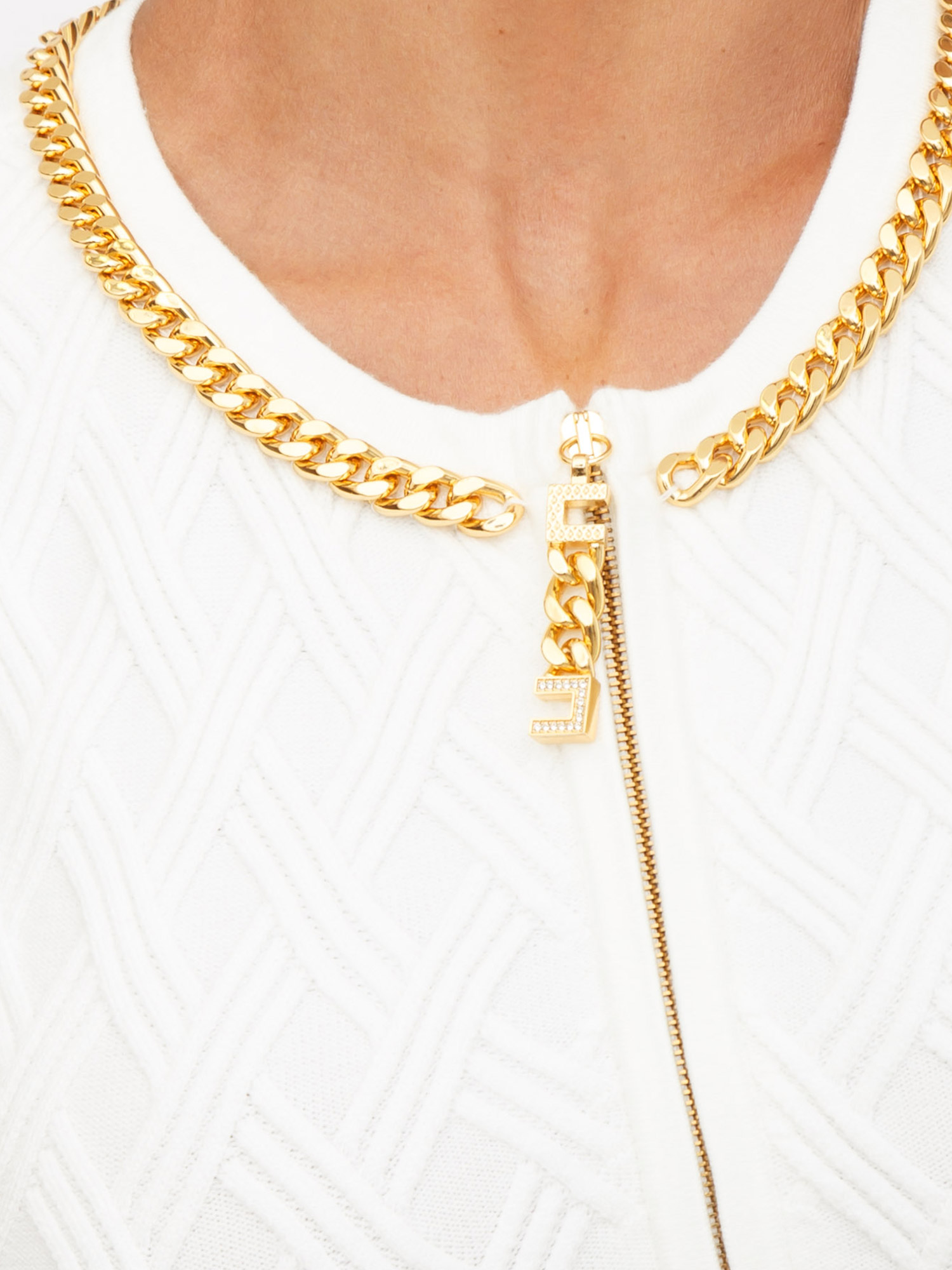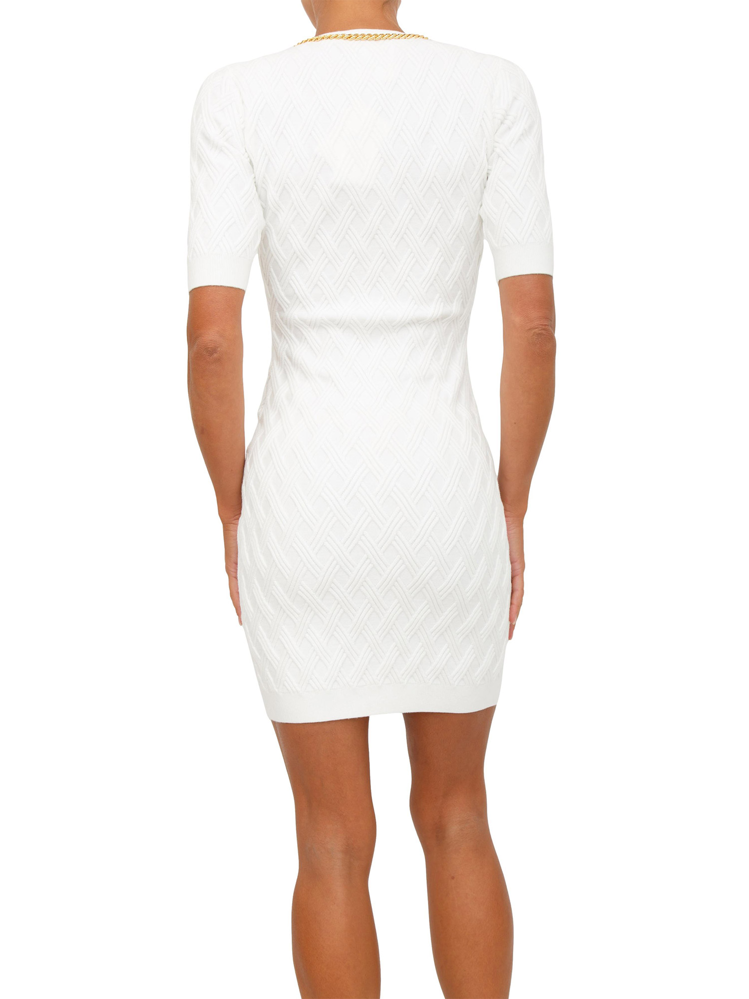 Abito Elisabetta Franchi in maglia avorio e catena gioiello