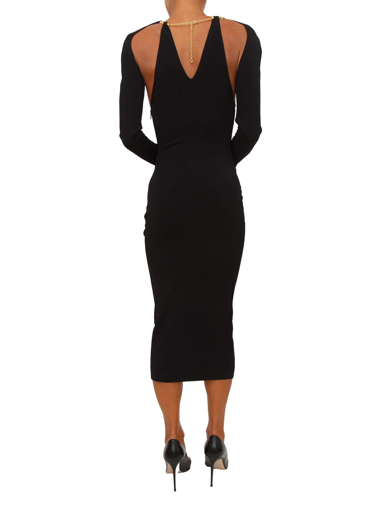 Abito Elisabetta Franchi in maglia nera con catena gioiello