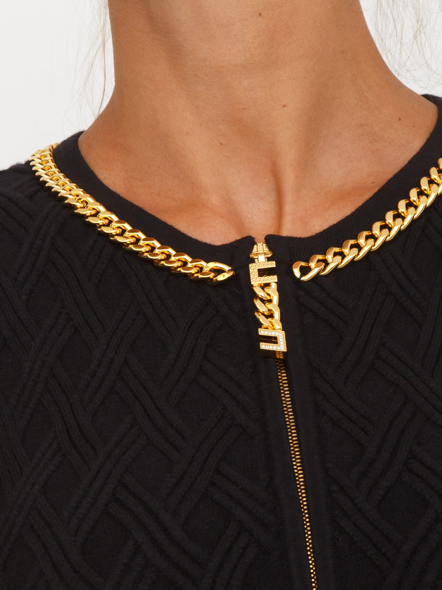 Abito Elisabetta Franchi in maglia nera e catena gioiello