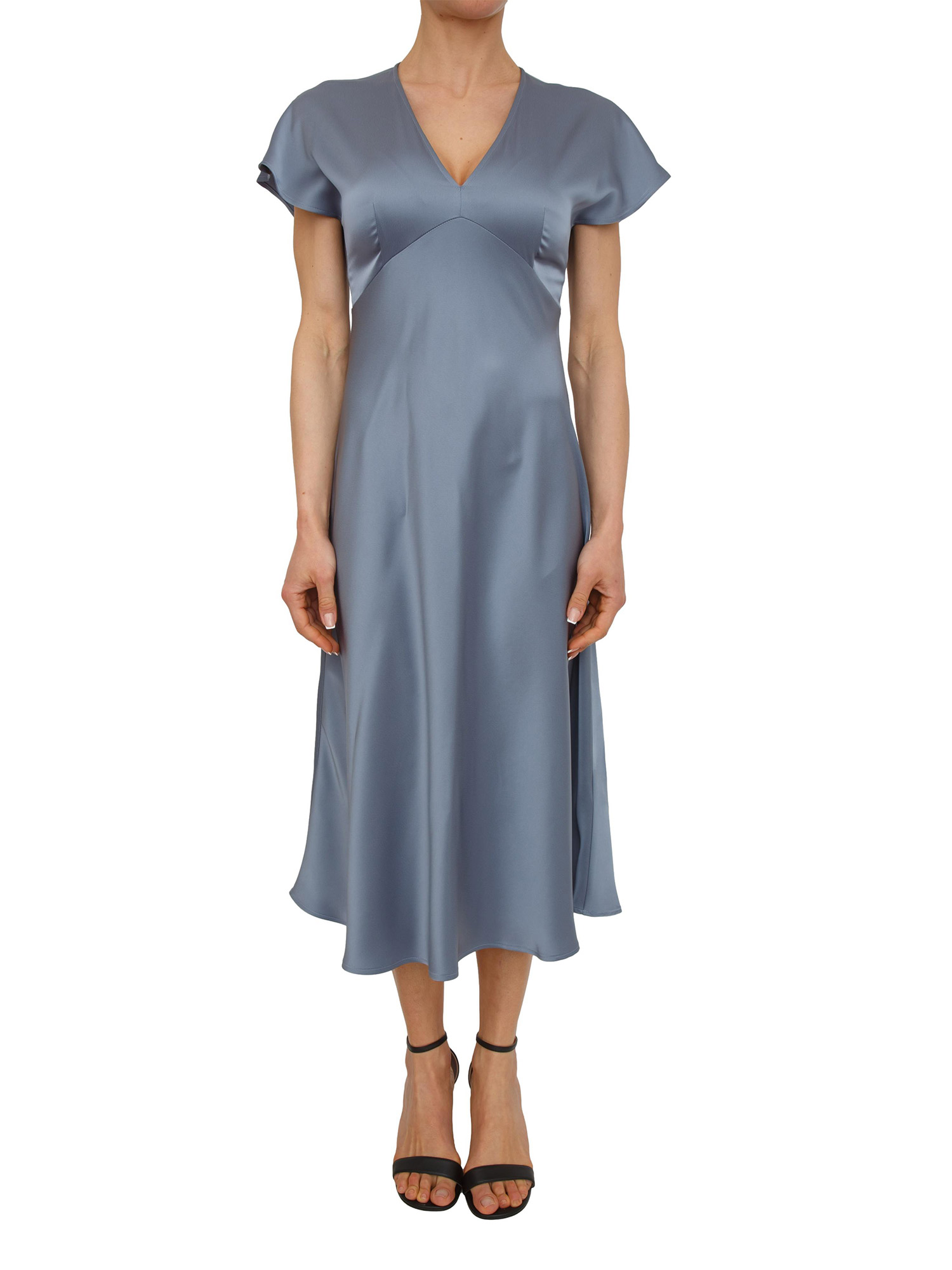 Taglio classico e un luminoso double satin rendono speciale questo abito Falange di Marella realizzato con maniche a kimono. Aggiungi in bijoux e una mini bag e sei pronta ad ogni party. La modella è alta 1.72 e indossa la taglia 38.