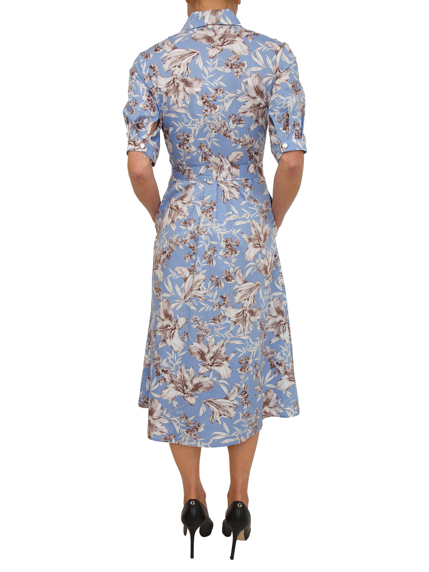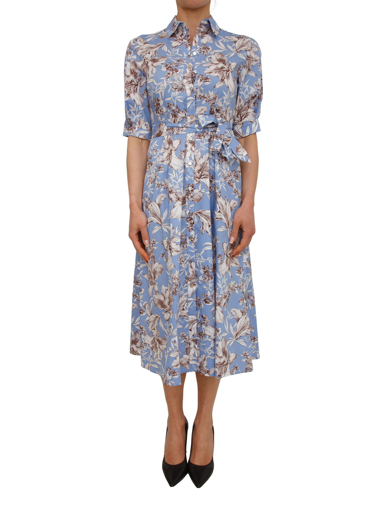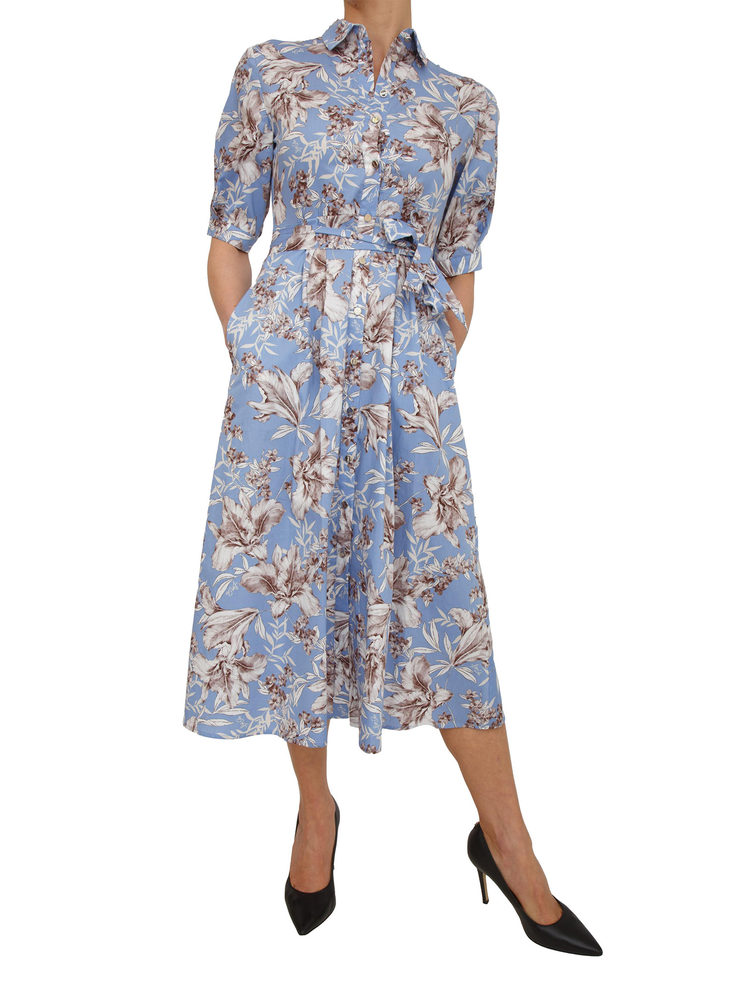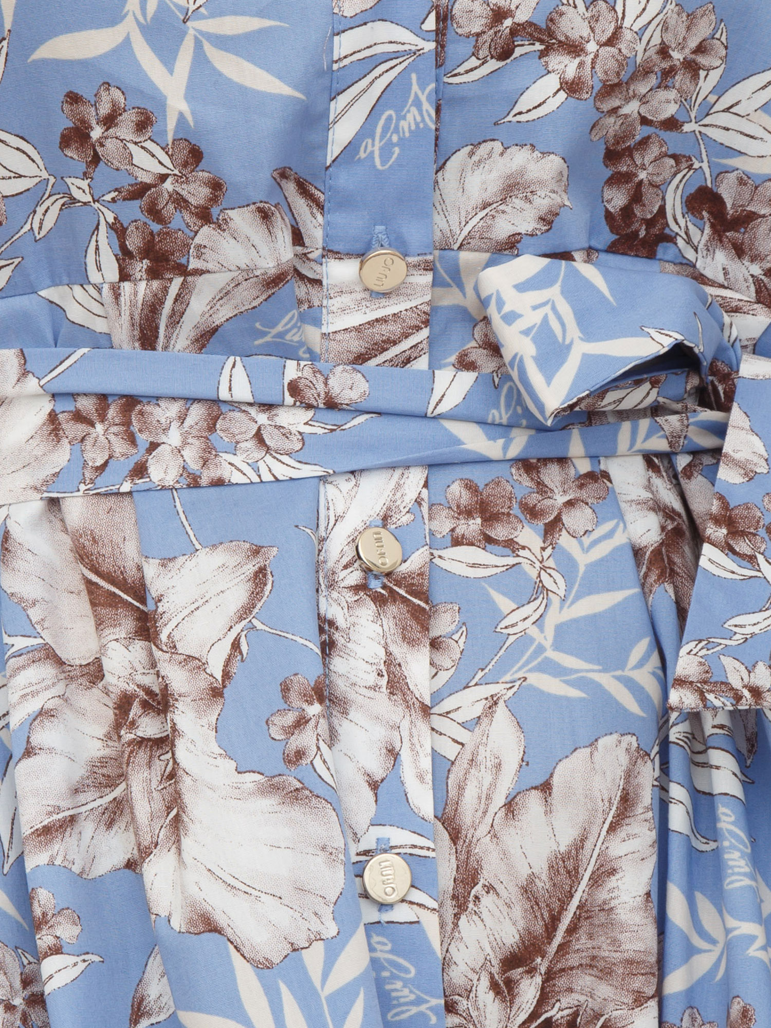 C’è qualcosa di magnetico in questo chemisier Liu Jo. Il popeline disegna la silhouette con naturale precisione, la cintura segna il punto vita e la stampa floreale si muove con equilibrio tra romanticismo e glam. Perfetto con stivali texani o sandali flat. La modella è alta 1.72 e indossa la taglia 38.