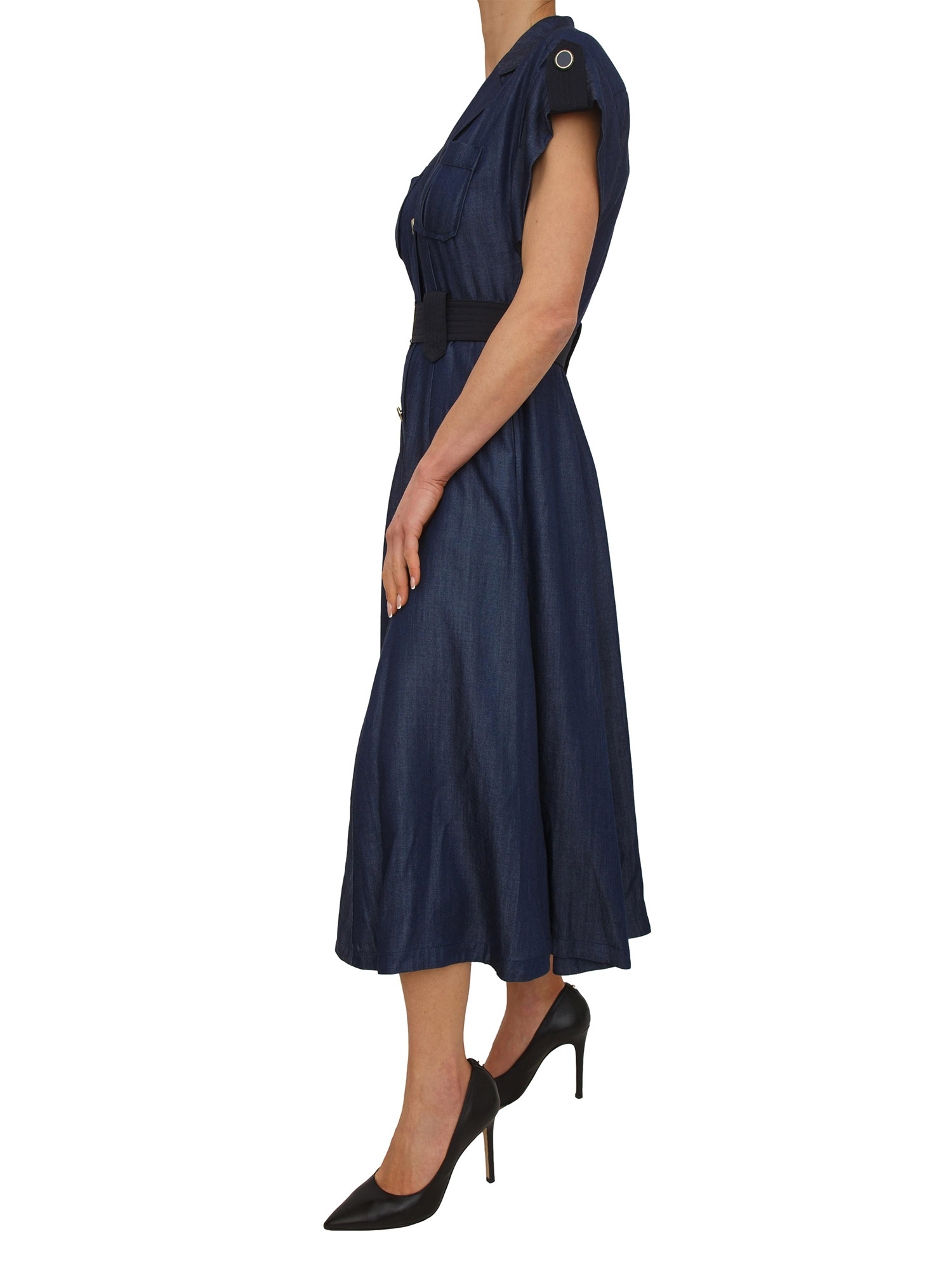 Casual chic, ma con l’attitudine di un abito da occasione. Realizzato in denim chambray, questo modello ha linee pulite e volumi morbidi: basta aggiungere sandali o biker e sei subito protagonista. La modella è alta 1.72 e indossa la taglia 38.