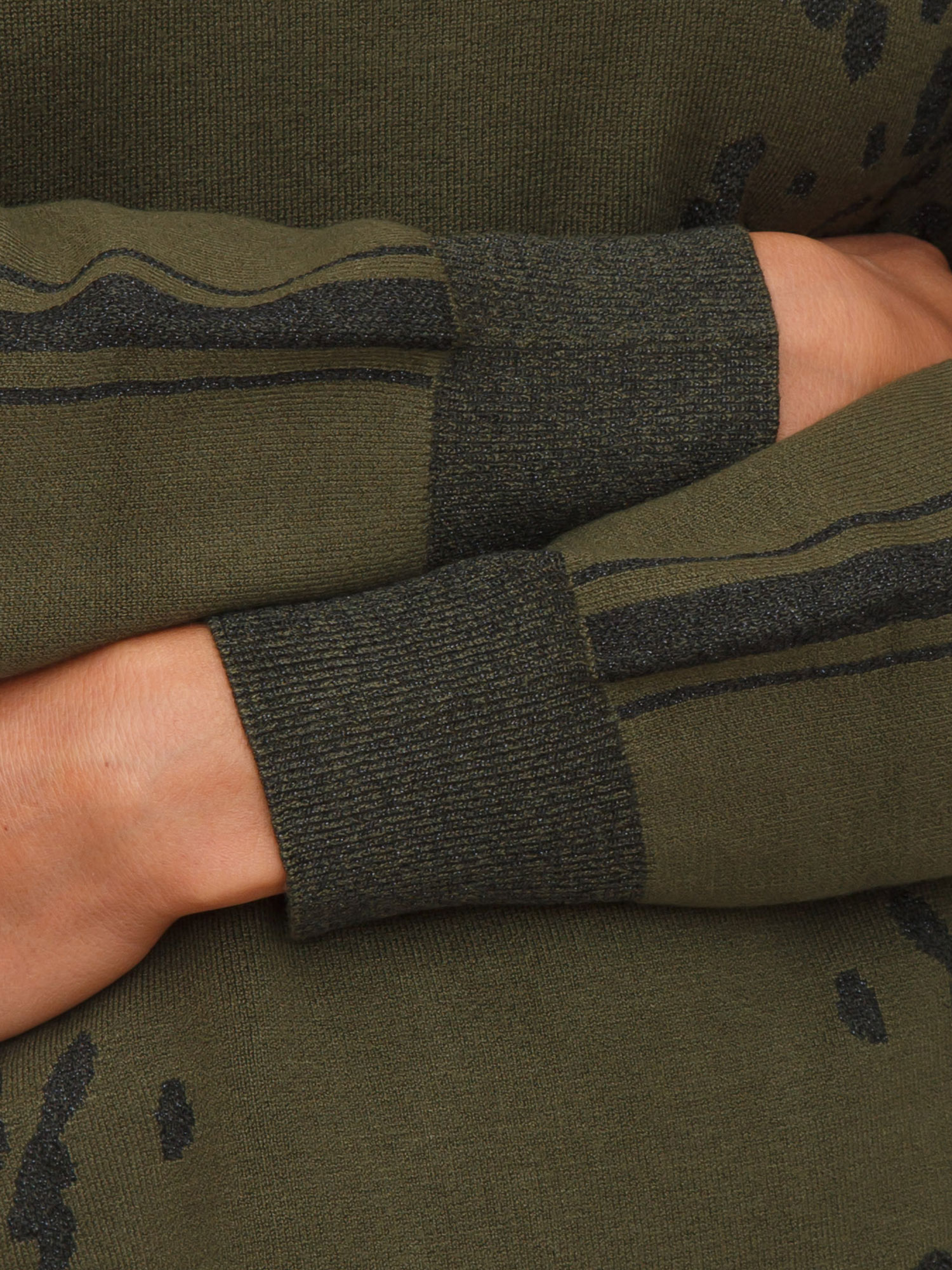 Abito Liu Jo in maglia viscosa e lurex verde motivo animalier