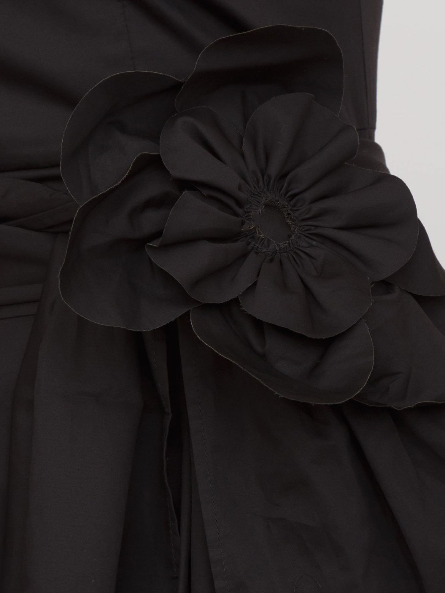 Abito lungo Aron Nenette in cotone nero con fusciacca fiore