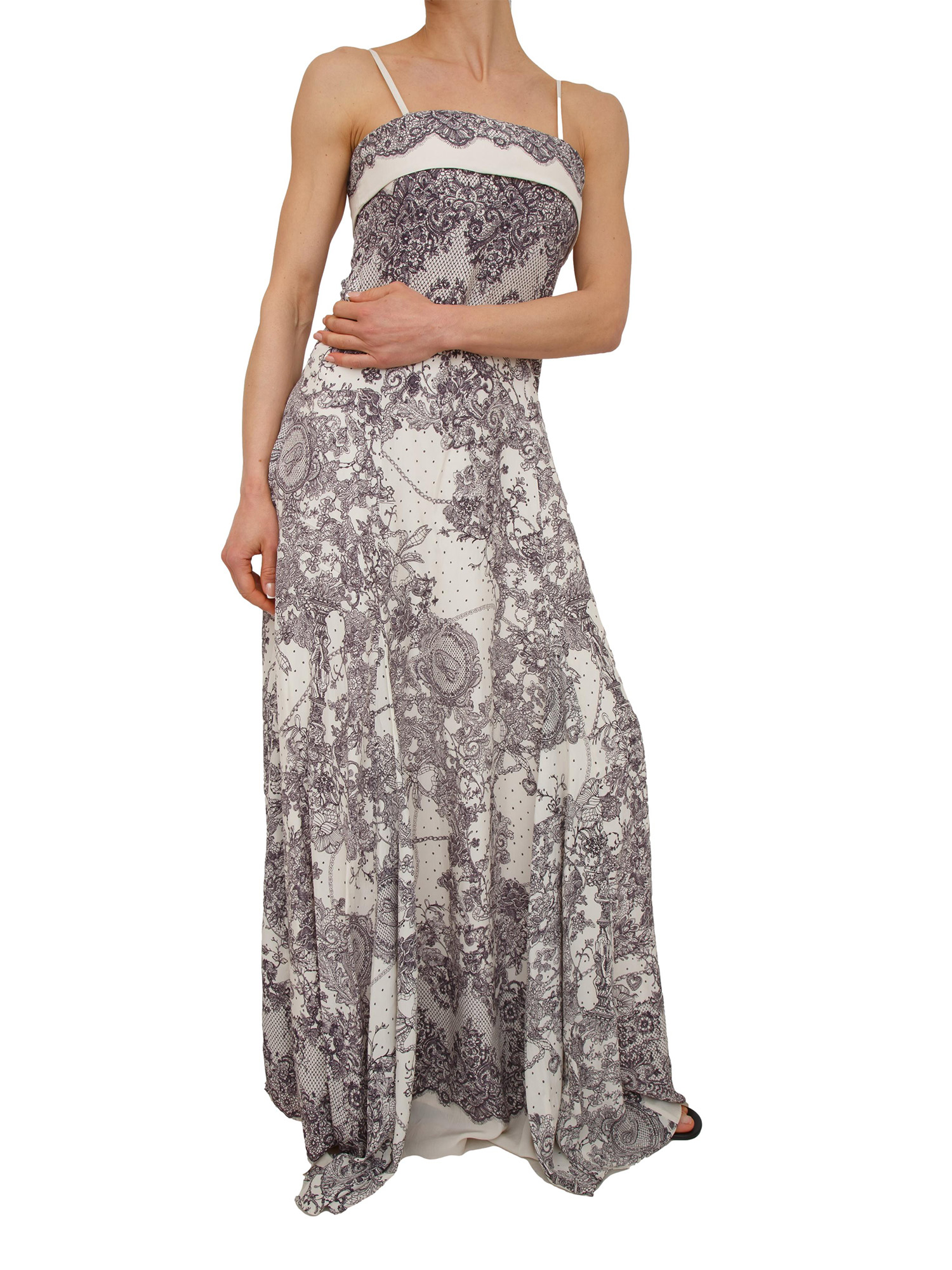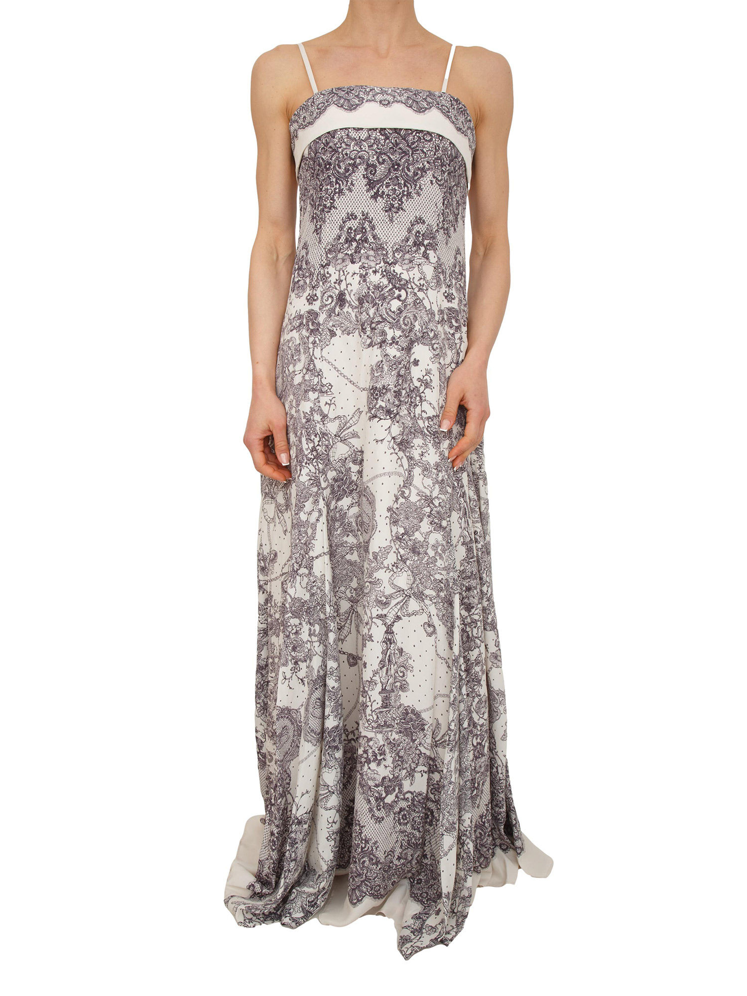 Abito lungo Blugirl in viscosa panna e stampa pizzo a contrasto