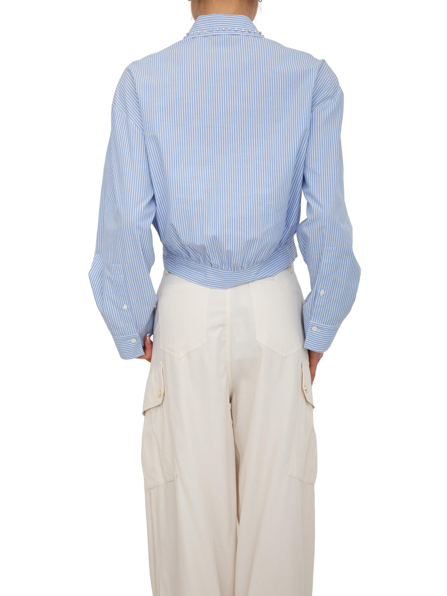 amicia cropped "Charita" Pinko in cotone celeste a righe