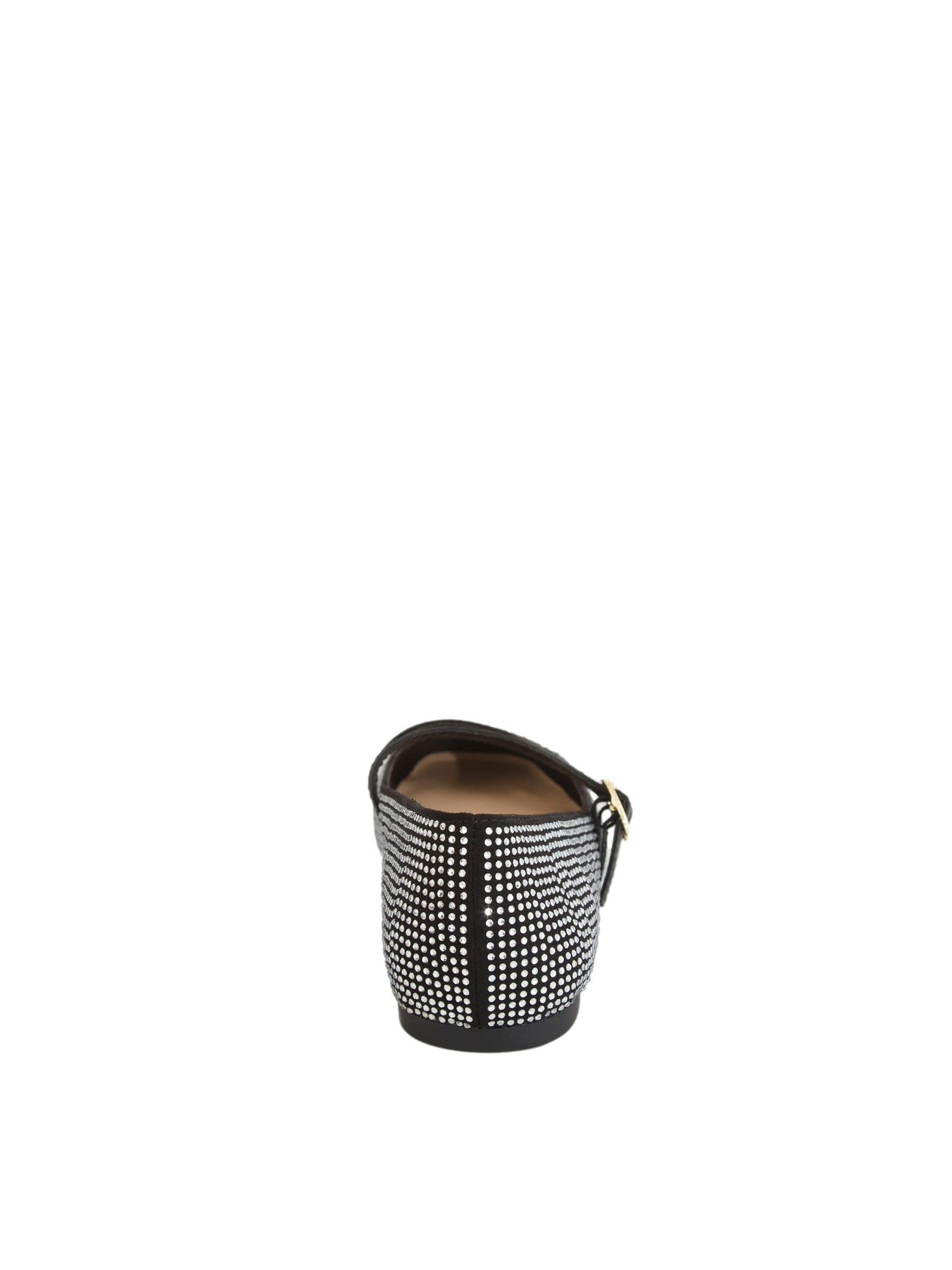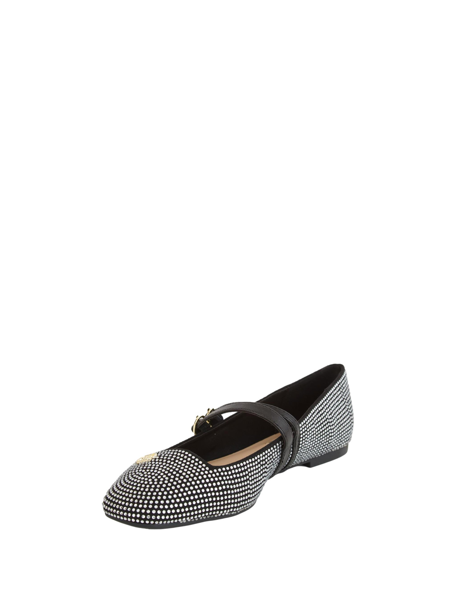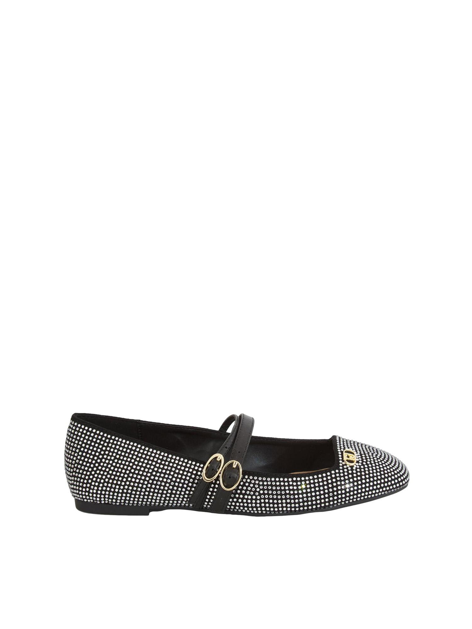 Ballerine Liu-jo Brigitte con tomaia in microfibra, strass all over, mini logo monogram, suola super-flat e chiusura con fascette regolabili.
