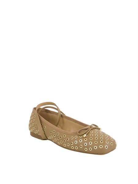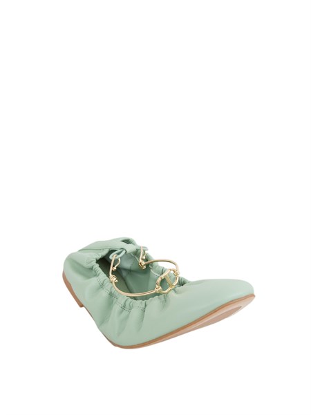 Ballerina flat in morbida nappa semilucida, caratterizzata da un design con punta tonda e décolleté accollato. Fodera in pelle. Personalizzata con piccolo logo a farfalla a rilievo a lato sul tallone. Suola e tacco in cuoio con isola in gomma.