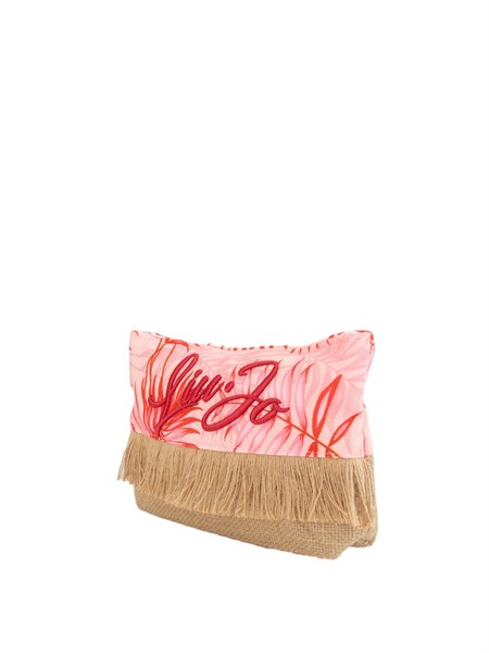 Pochette Liu Jo donna realizzata in tessuto con stampa fantasia verde arricchito nella parte sotto con rafia e frange a tinta unita. Logo lettering grande a contrasto ricamato davanti, chiusura zip e fodera interna la rendono bella e pratica da protare sempre con te. Dimensioni: 20x15x5 cm.