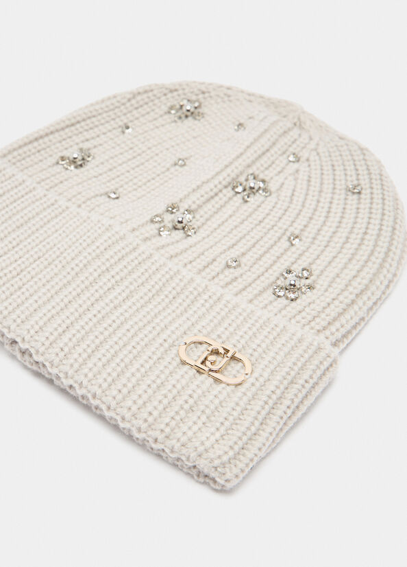 Berretto beanie Liu Jo grigio con strass e perle