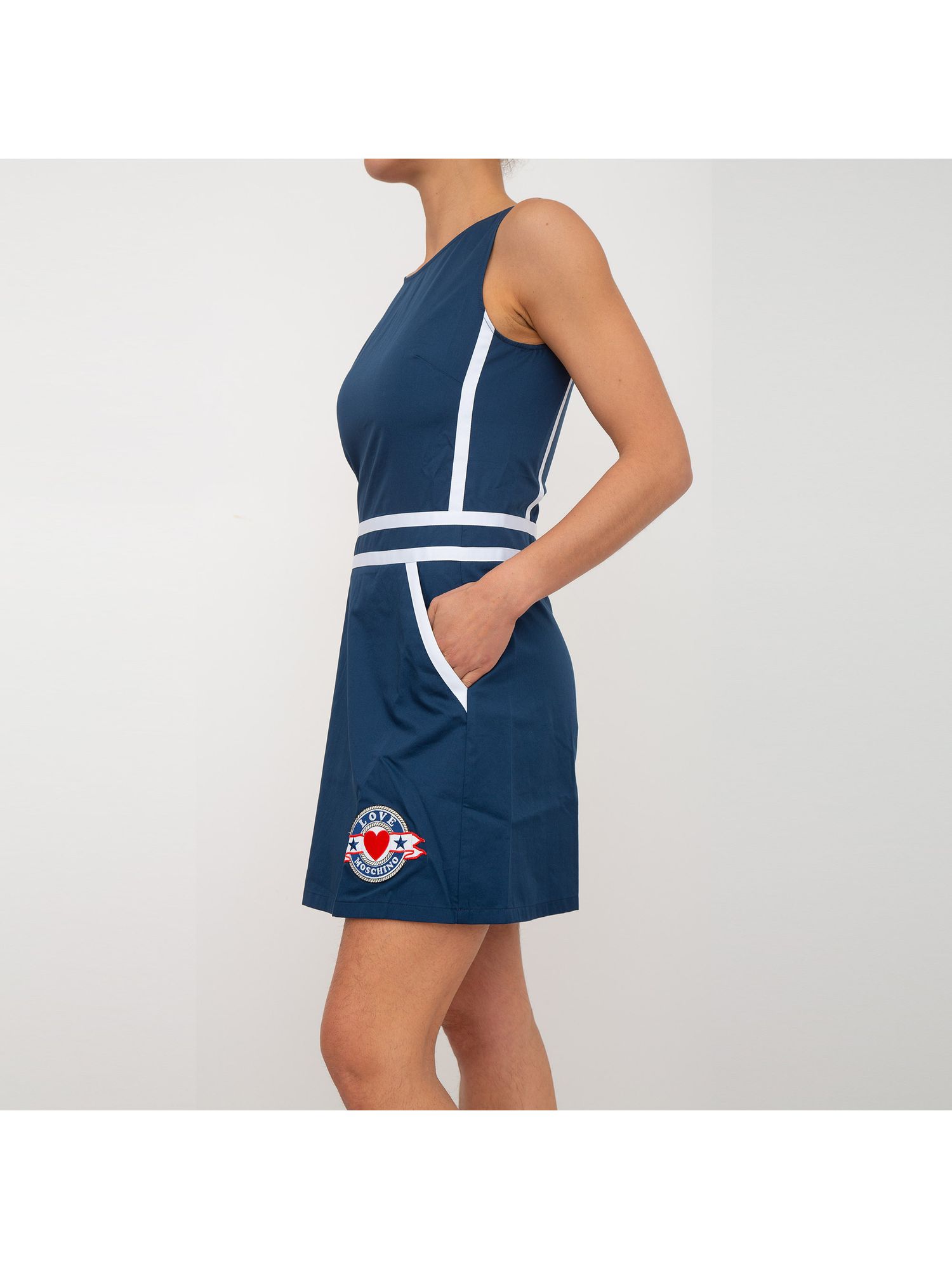 Abito tennis, applicazione laterale con logo, bordo a contrasto, girocollo, senza maniche, taglio svasato e lunghezza sopra il ginocchio.