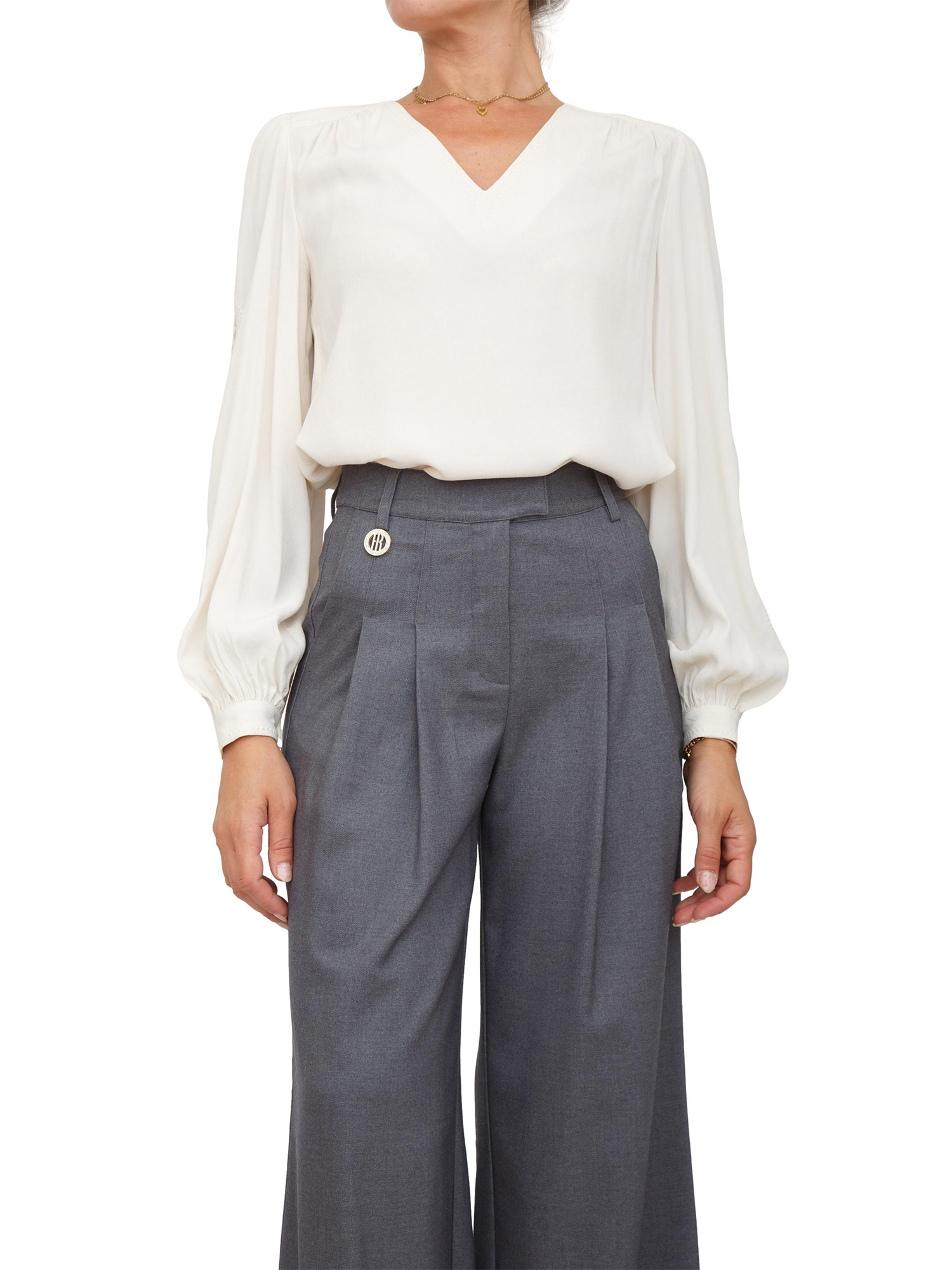Blusa Twinset in crêpe avorio con ricamo su maniche a palloncino