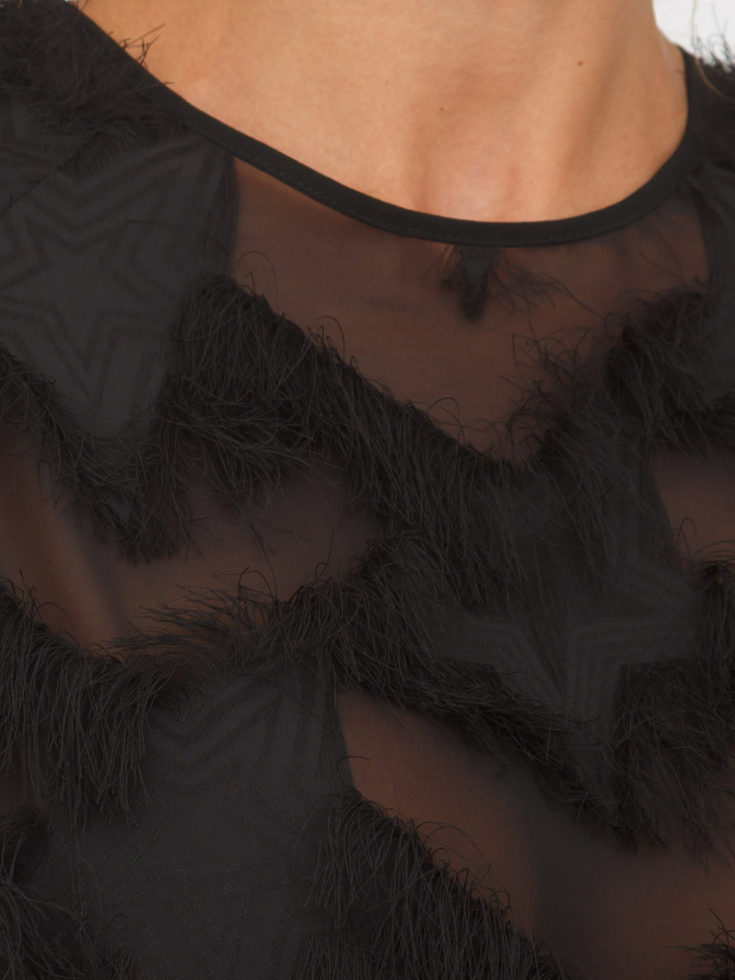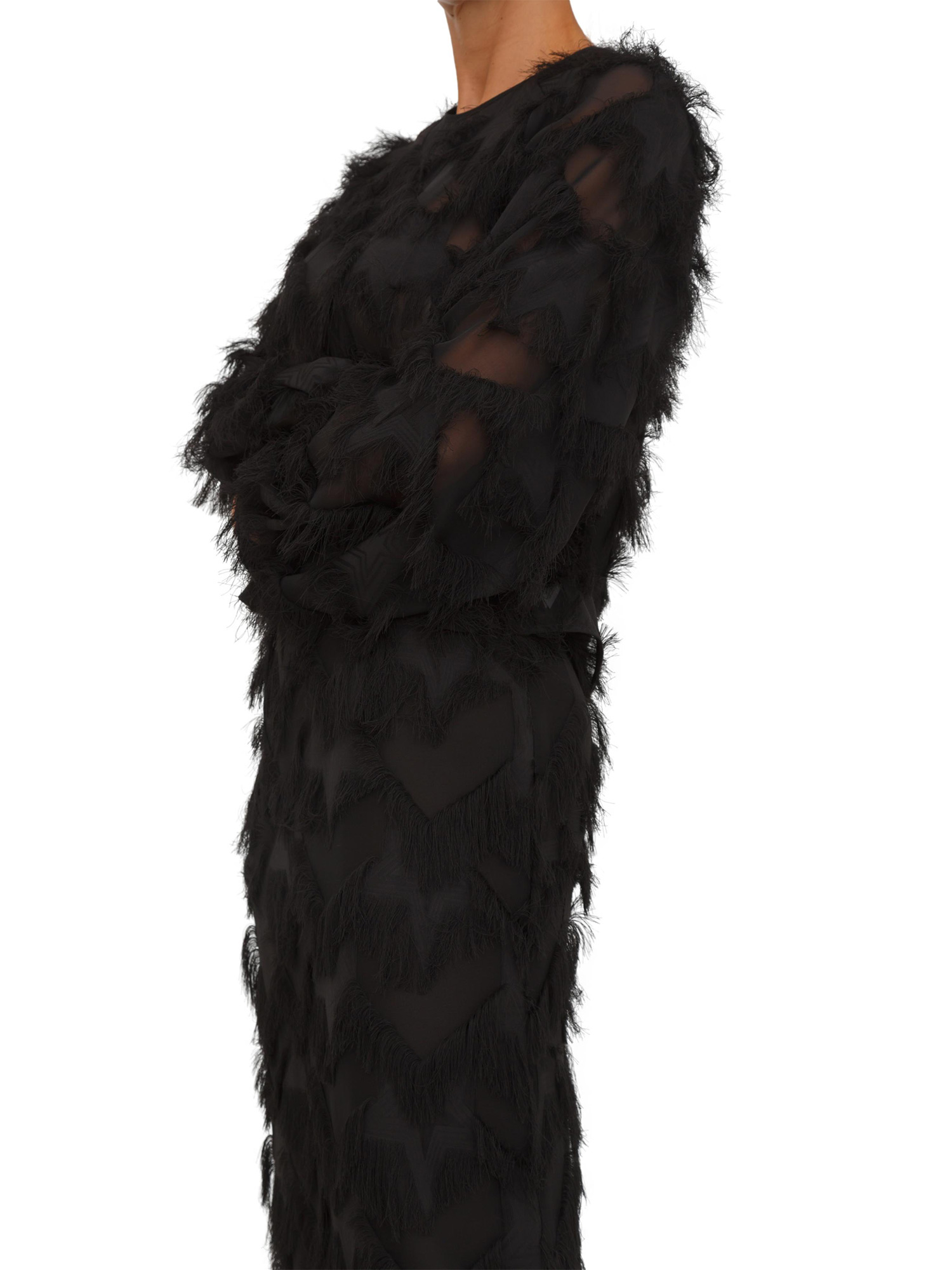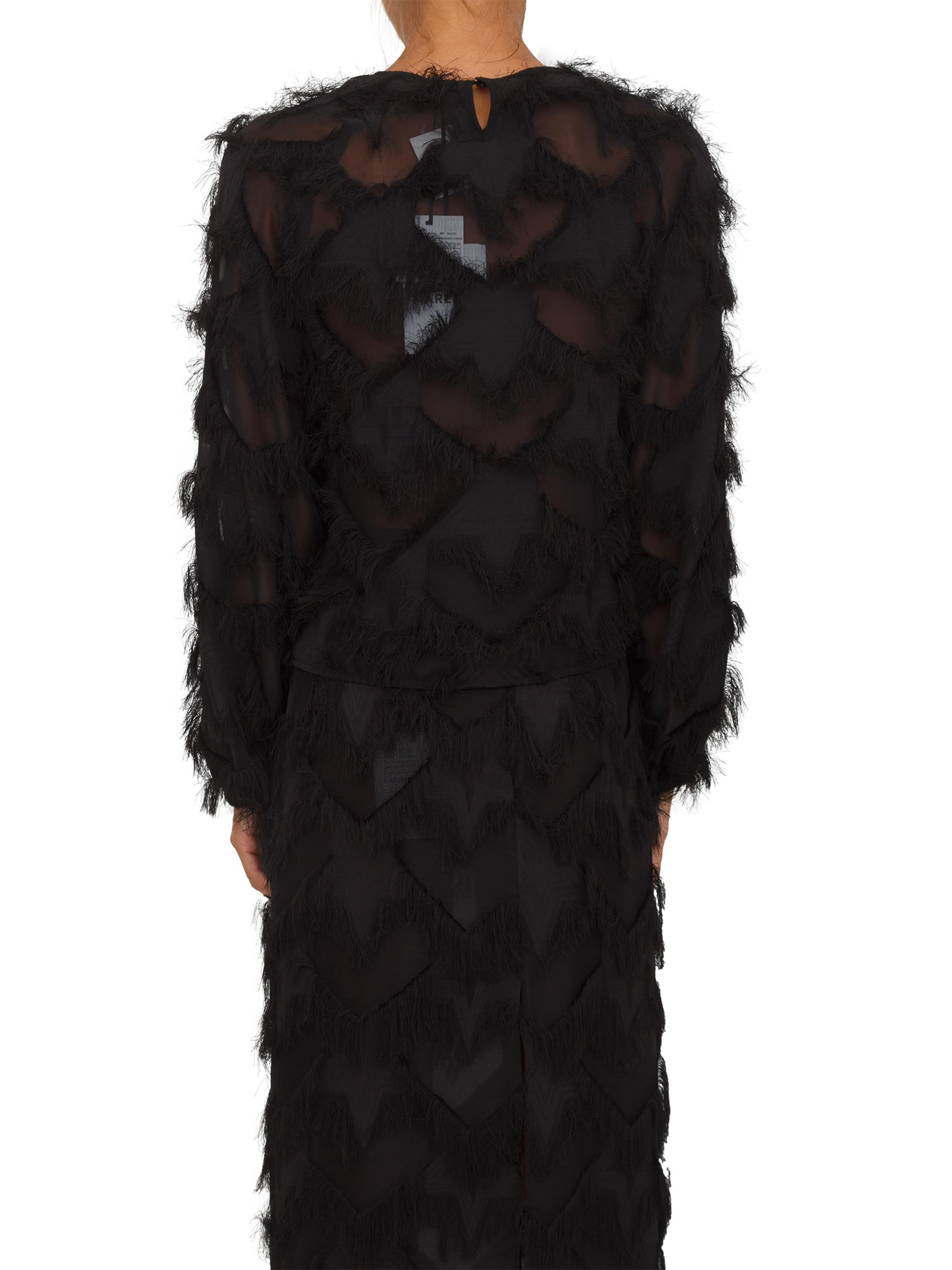 Blusa Marella in georgette nera lavorata in fil coupé effetto frangia