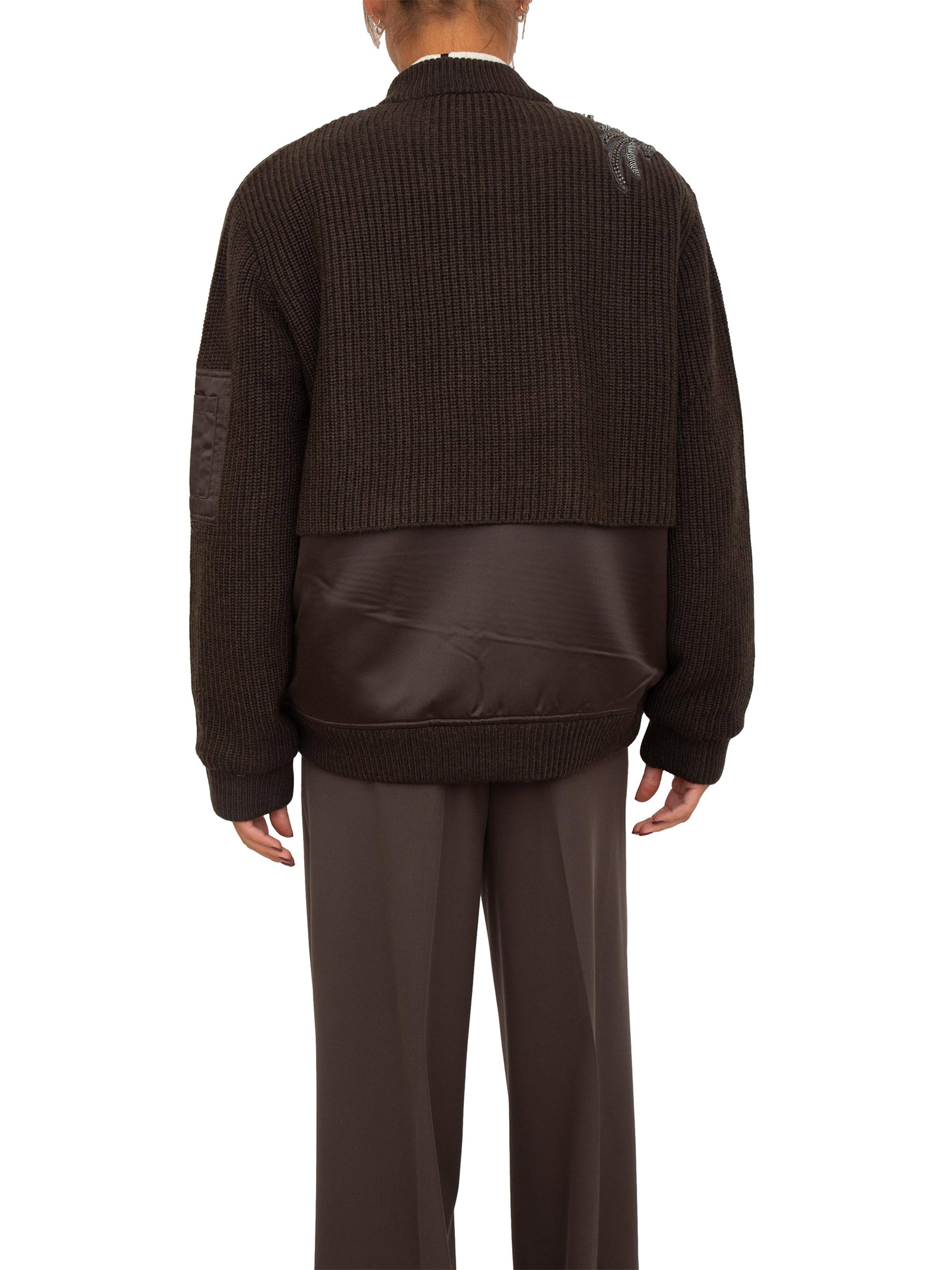 Bomber Blugirl in maglia e duchesse marrone con cristalli