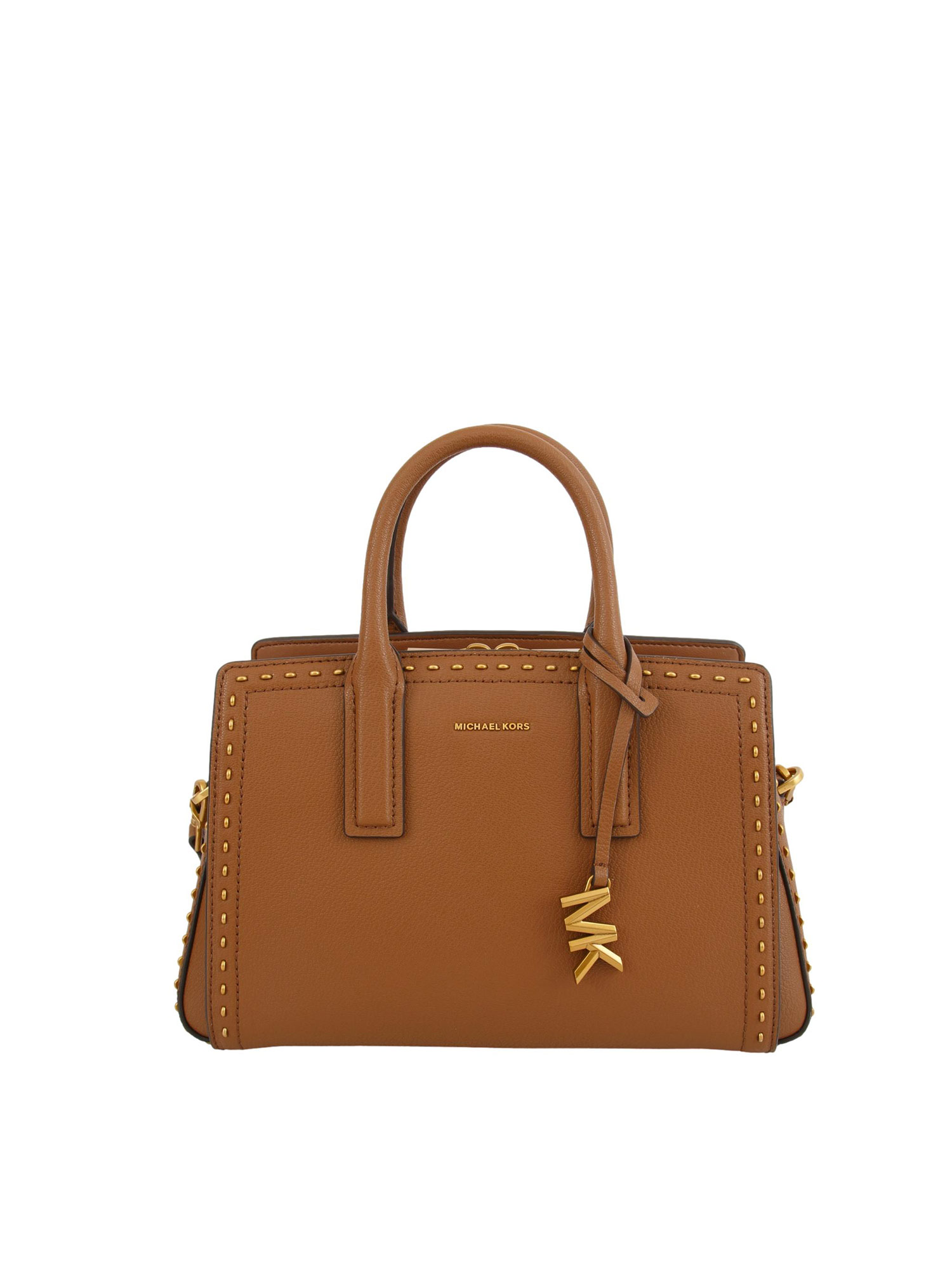 Borsa a mano Michael Kors Laila piccola in pelle con borchie cuoio