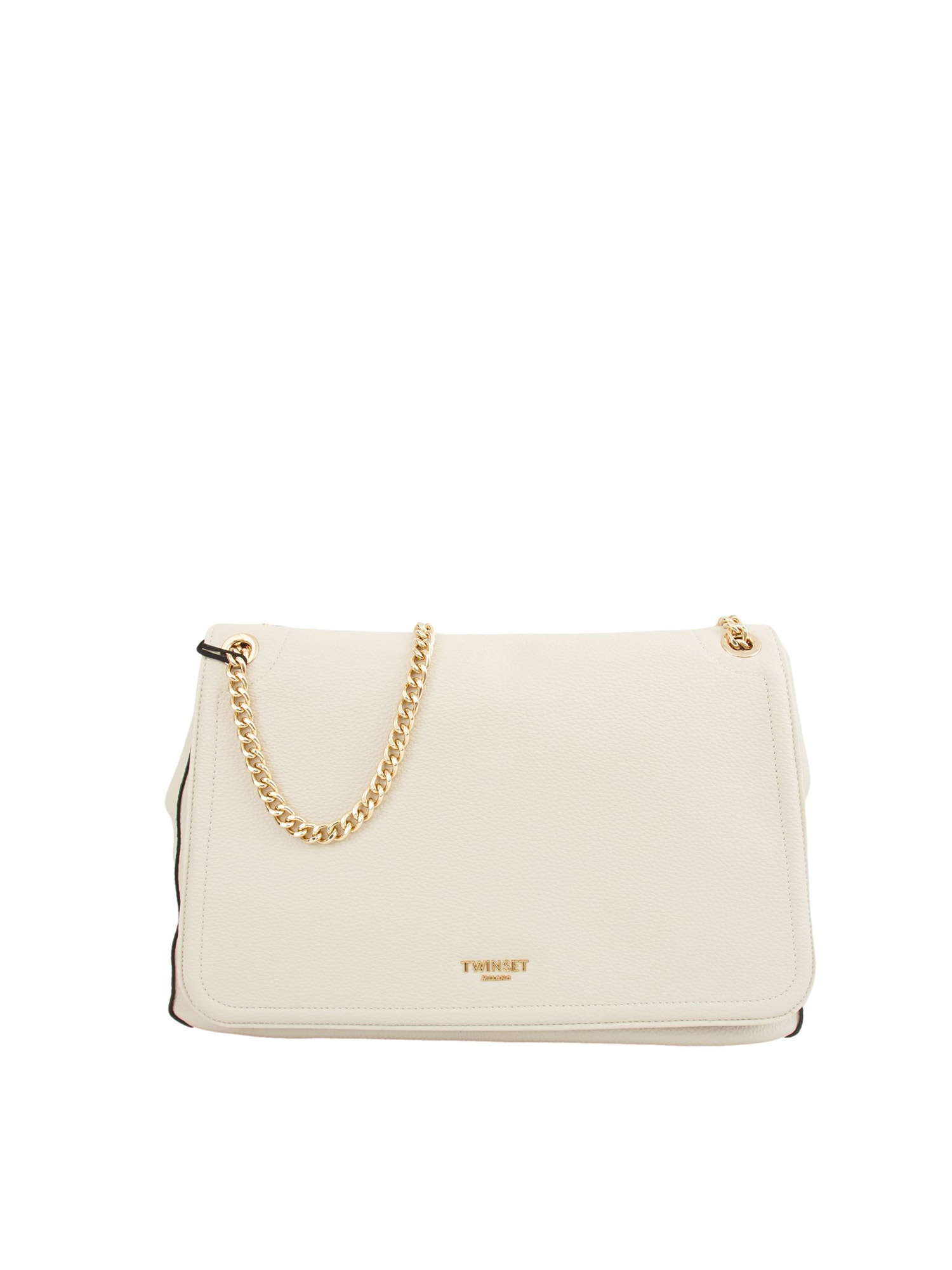 Borsa a spalla 'Brera' Twinset con logo lettering in ecopelle avorio