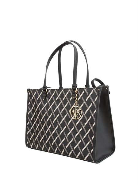 Shopper piccola Elisabetta Franchi in tessuto jacquard con stampa logo all-over e inserti in materiale sintetico effetto spazzolato. [and]Egrave; caratterizzata da dettagli interni color fluo e tracolla di servizio per portabilità a spalla.