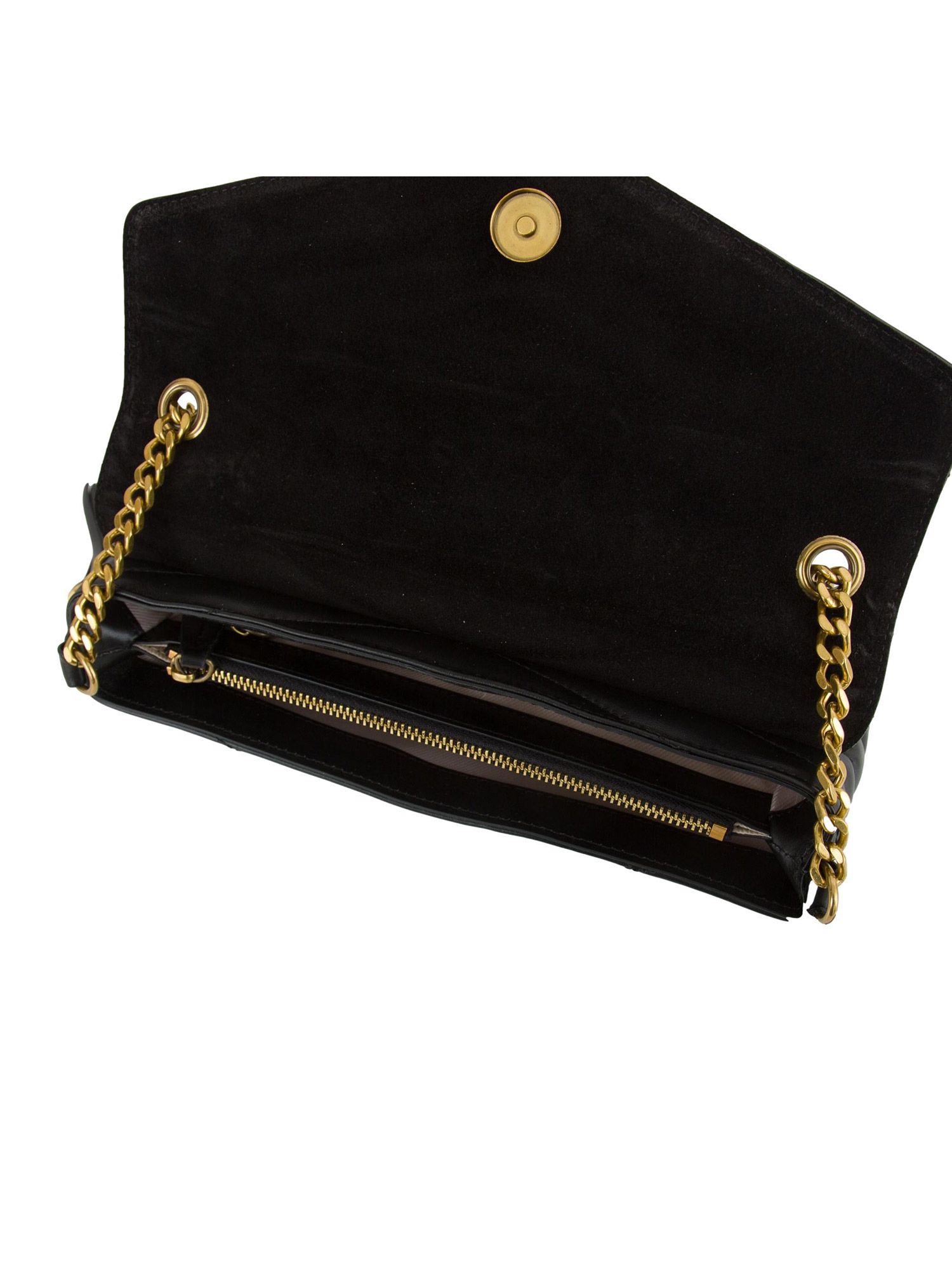 Borsa a tracolla 'Dreamy' made in Italy in pelle di vitello liscio pieno fiore italiano, con trattamento antigoccia e antigraffio, costruzione modello baguette, lavorazione trapuntata a losanghe con logo Oval T in metallo. Chiusura con patta e magnete, tracolla in catena scorrevole con spallaccio in pelle per una doppia portata, nappa in tono con dettagli in metallo, foderata.
