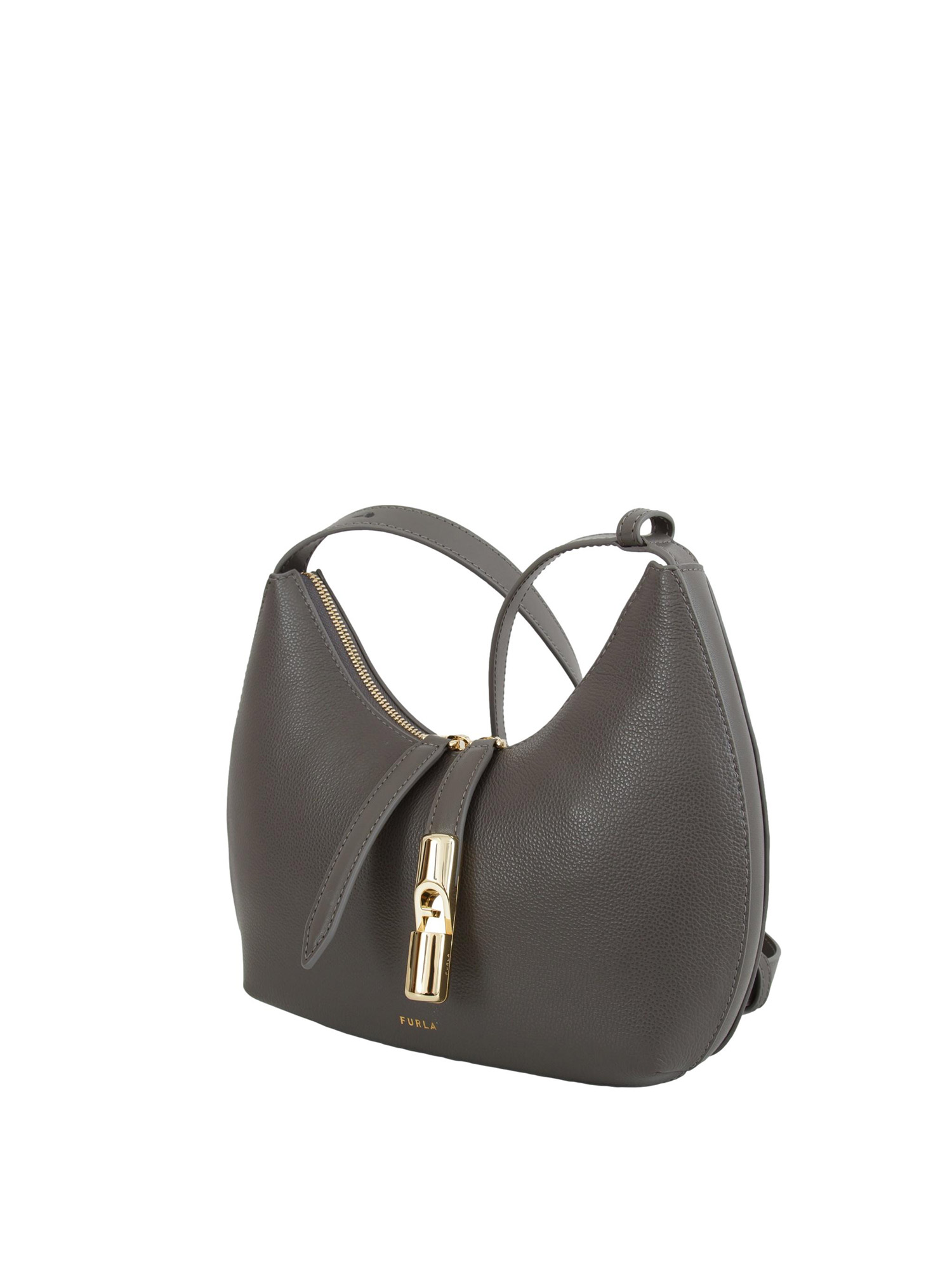 Furla Goccia è la shoulder bag dalle linee morbide e sinuose. In un gioco di contrasti materici tra pelle martellata e dettagli in pelle liscia, si caretterizza per la forma stondata e una silhouette compatta ma spaziosa. Chiusura con doppio cursore a zip e logo Arco. Dimensioni: 22 x 21 x 7,5 cm.