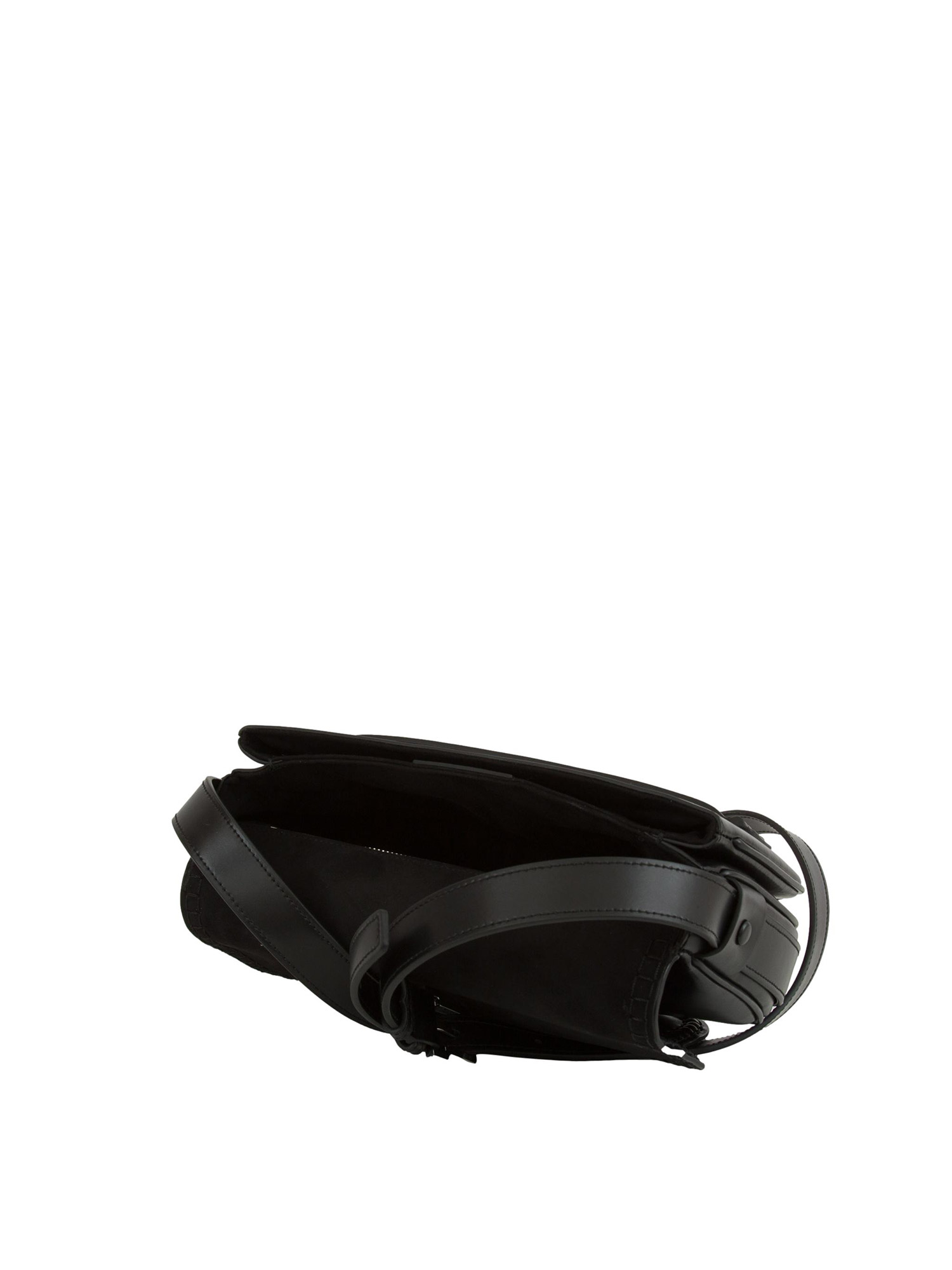 2. Borsa a tracolla media in pelle con patta e soffietto logato, pelle liscia, chiusura con patta e soffietto, logo serigrafato e tracolla regolabile. Dimensioni: 26 x 19 x 9 cm
