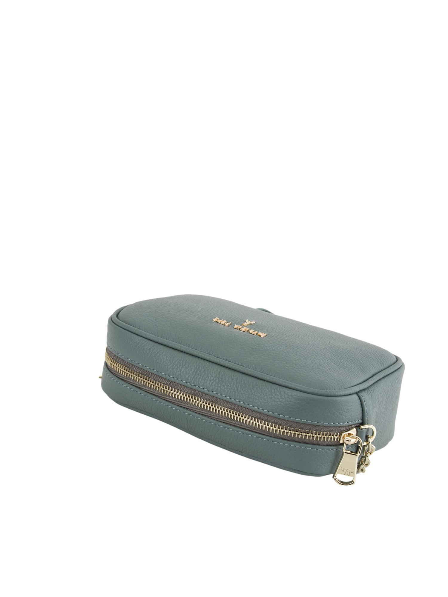 Borsa tracolla Patrizia Pepe in pelle martellata azzurra
