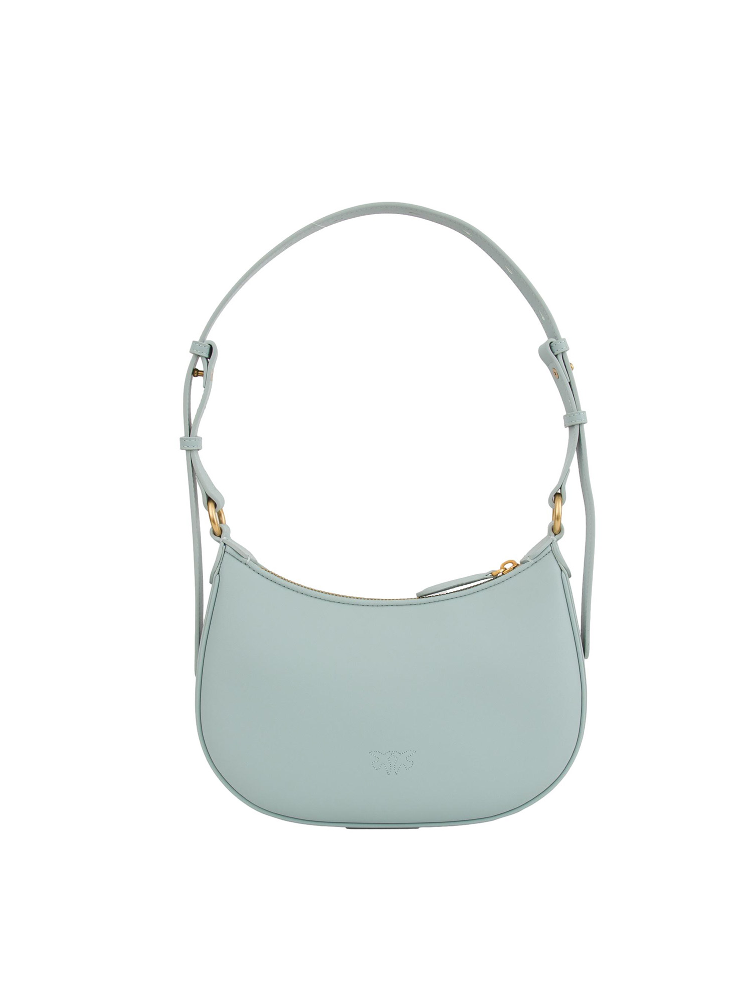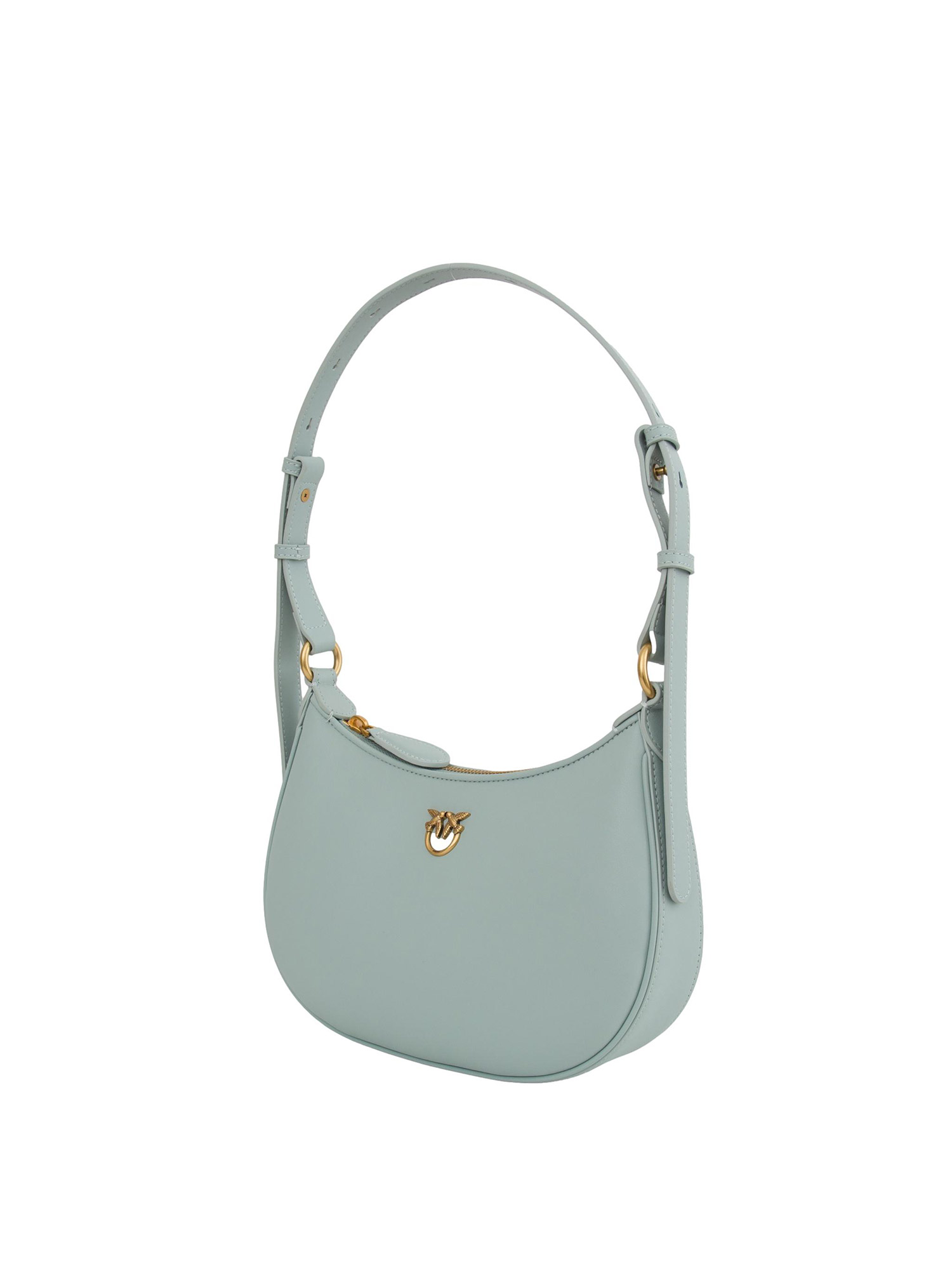Mini Love Bag Half Moon dalla caratteristica forma a mezzaluna in morbida pelle mano seta, personalizzata con placchetta Love Birds Diamond Cut in metallo, galvanica antique gold. Interno foderato in microfibra scamosciata e tracolla in pelle per la portata a spalla. Chiusura con zip.