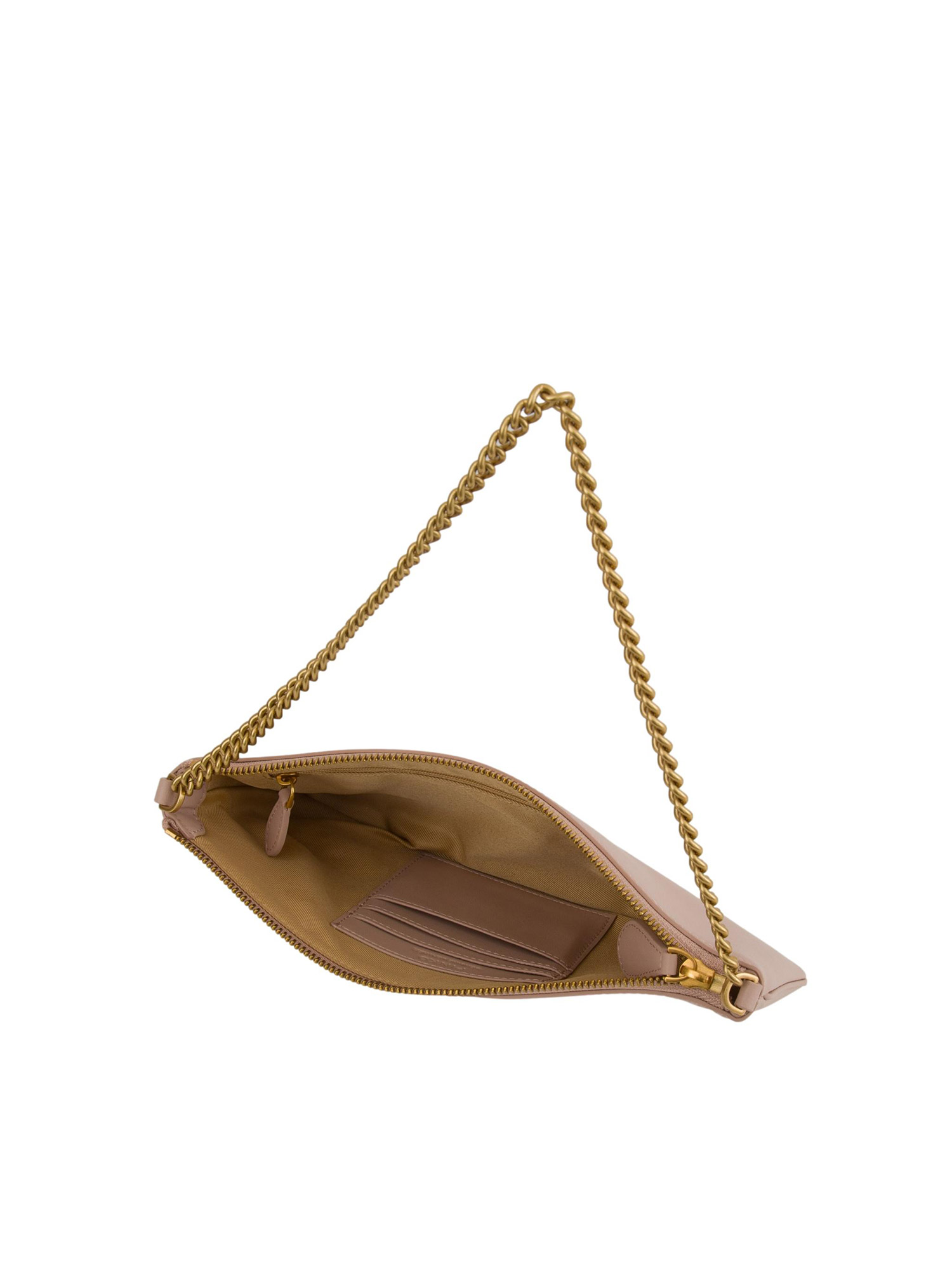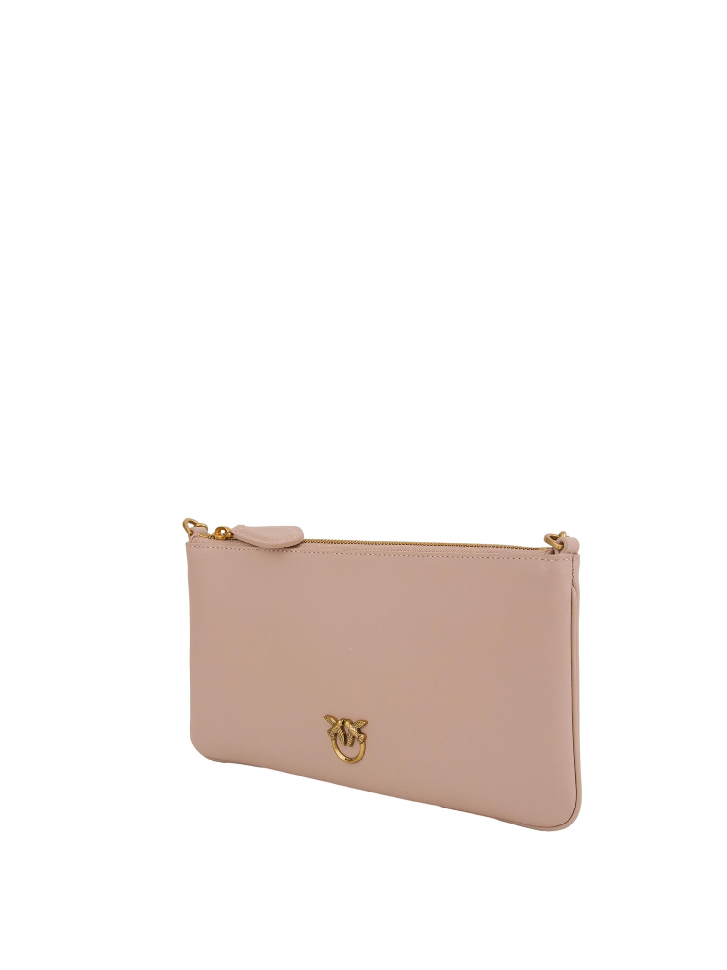 Borsa a tracolla flat dalla linea allungata in morbida pelle mano seta. Personalizzazione con placchetta Love Birds Diamond Cut, galvanica antique gold. Interno foderato in polycotton e tracolla a catena sottile. Chiusura con zip.