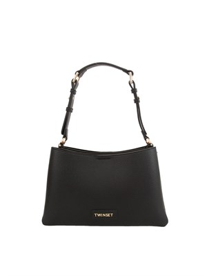 Borsa a spalla Twinset realizzata in pelle ecologica con effetto martellato. Modello pulito ed essenziale che puoi abbinare ad ogni tuo outfit grazie anche alla praticità dei tre scomparti, uno con chiusura zip e gli altri due con bottone magnetico. Il manico è molto comodo e regolabile, inoltre il design prevede anche la tracolla rimovibile e regolabile. Misure: 28 x 17 x 6.