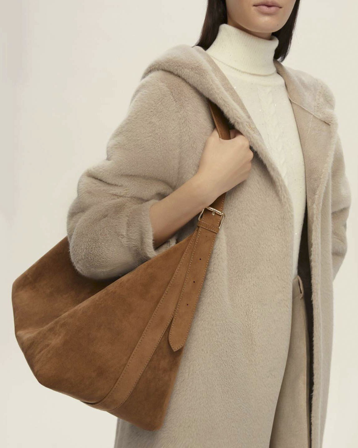 Capiente e morbida, la maxi hobo bag Adelio di Emme Marella, realizzata in jersey spalmato, coniuga spirito metropolitano e praticità tutta femminile. Il manico regolabile e la zip discreta la rendono un’alleata perfetta nei giorni più dinamici — da portare a spalla con disinvoltura.
