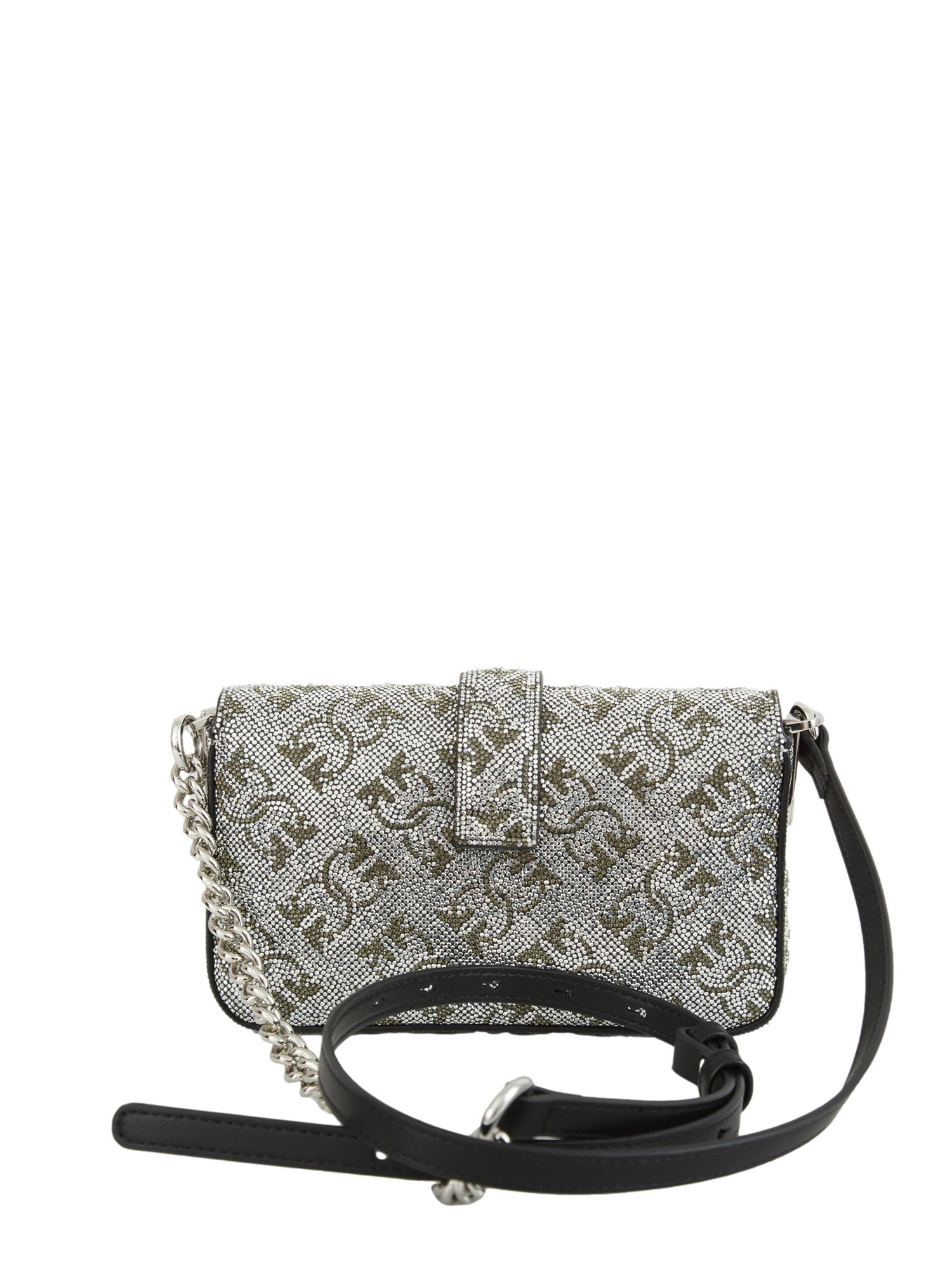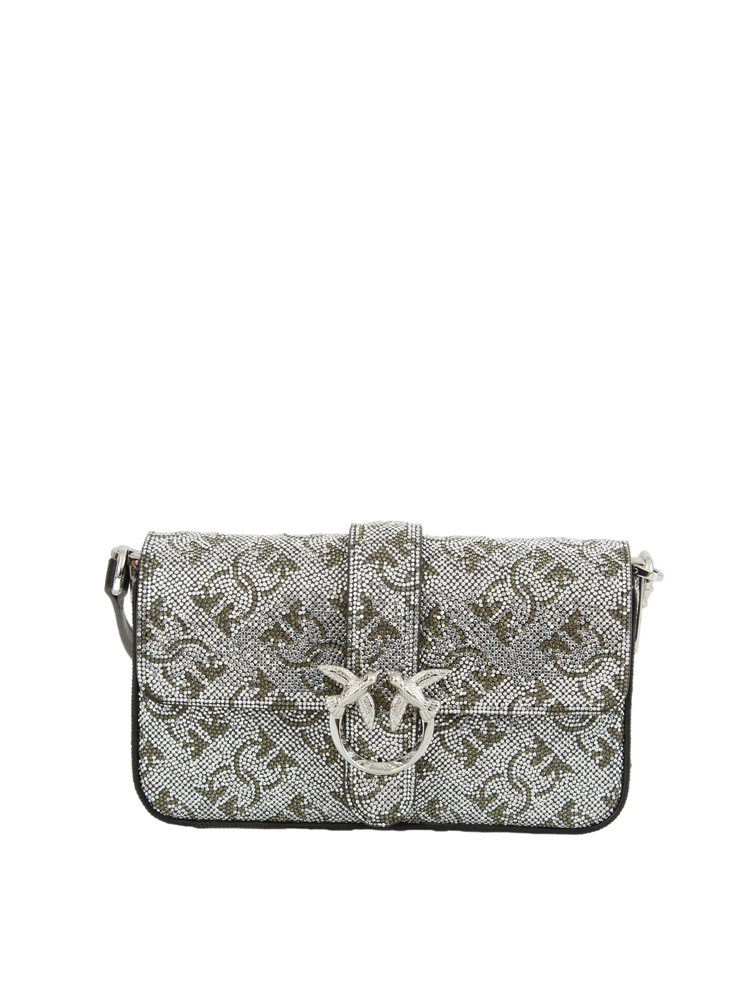 Borsa a spalla piccola Pinko Baby Love Bag Slouchy realizzata in pelle e interamente rivestita di strass di colori diversi che formano un motivo monogram all-over per un perfetto look scintillante. Caratterizzata da tracolla regolabile in pelle e catena, estremamente raffinata e pratica. Chiusura a patta con fibbia logo Love Birds Diamond Cut. L'interno è foderato in tessuto drill di cotone e include una tasca a parete chiusa con zip. Dimensioni: 18x11x4 cm