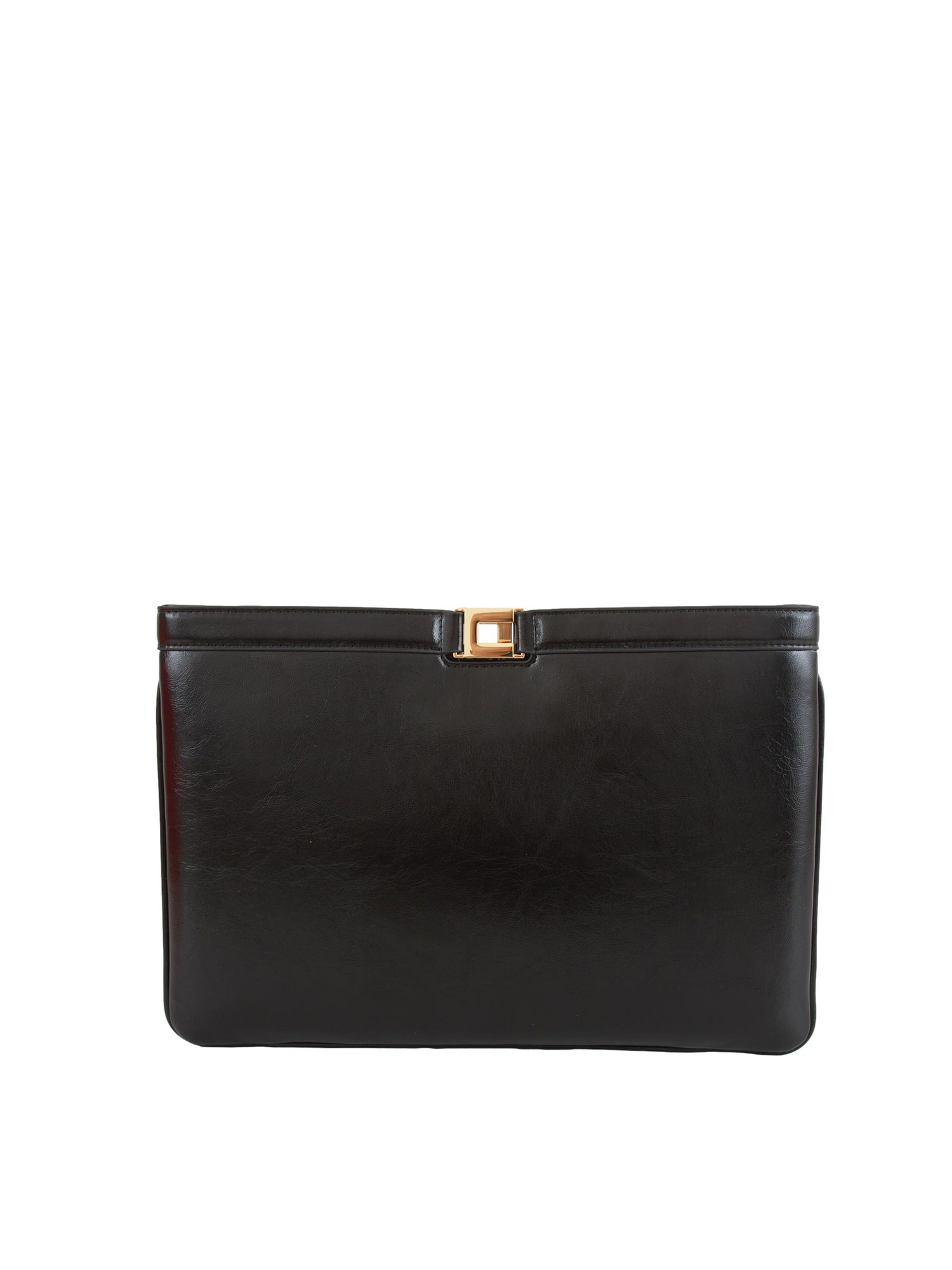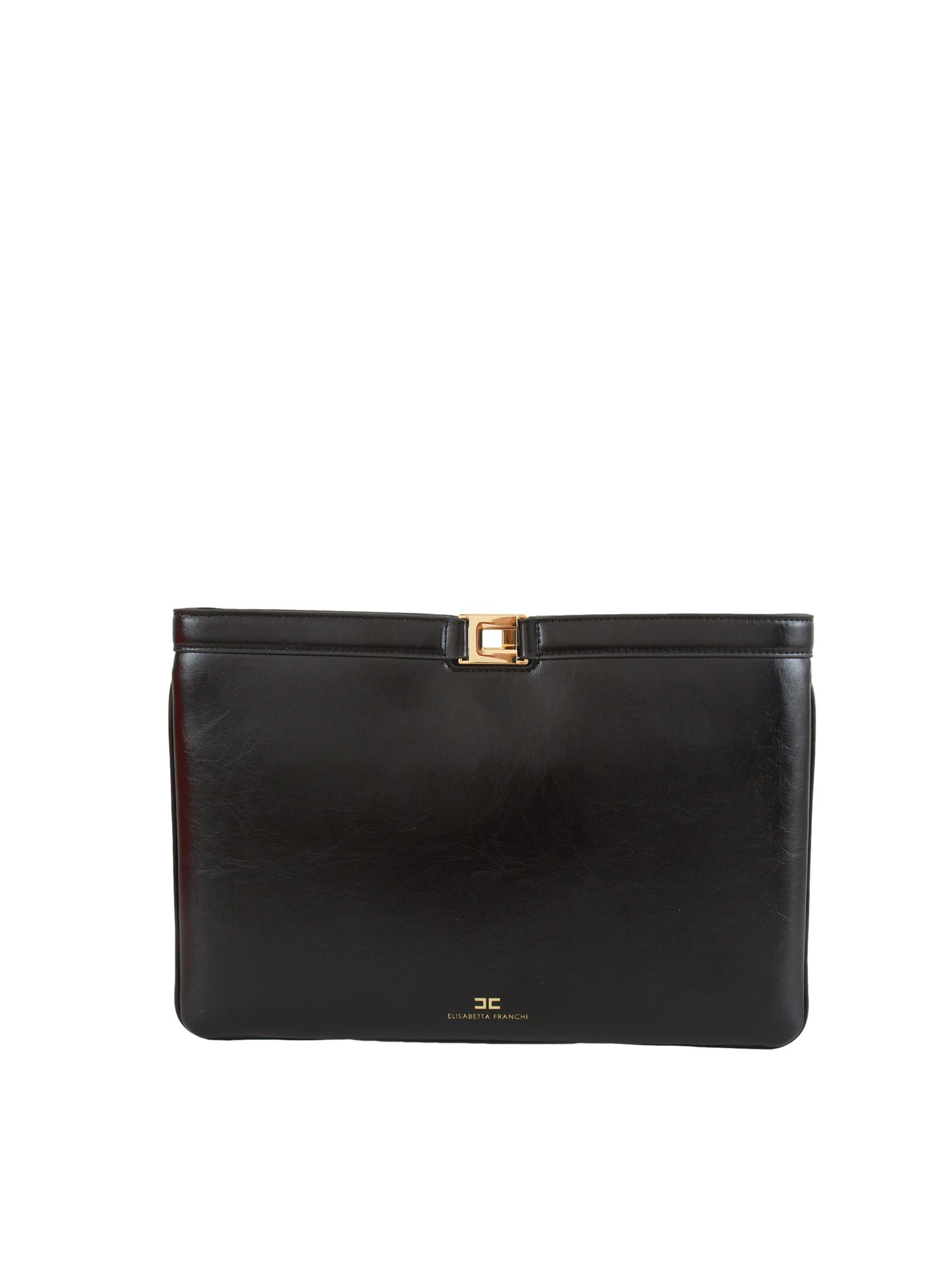 Borsa Elisabetta Franchi realizzata in materiale sintetico con texture effetto naplak. Con design a busta, ha dettaglio in metallo dorato con logo per una nota luminosa. Dimensioni 23 x 33 x 2 cm.