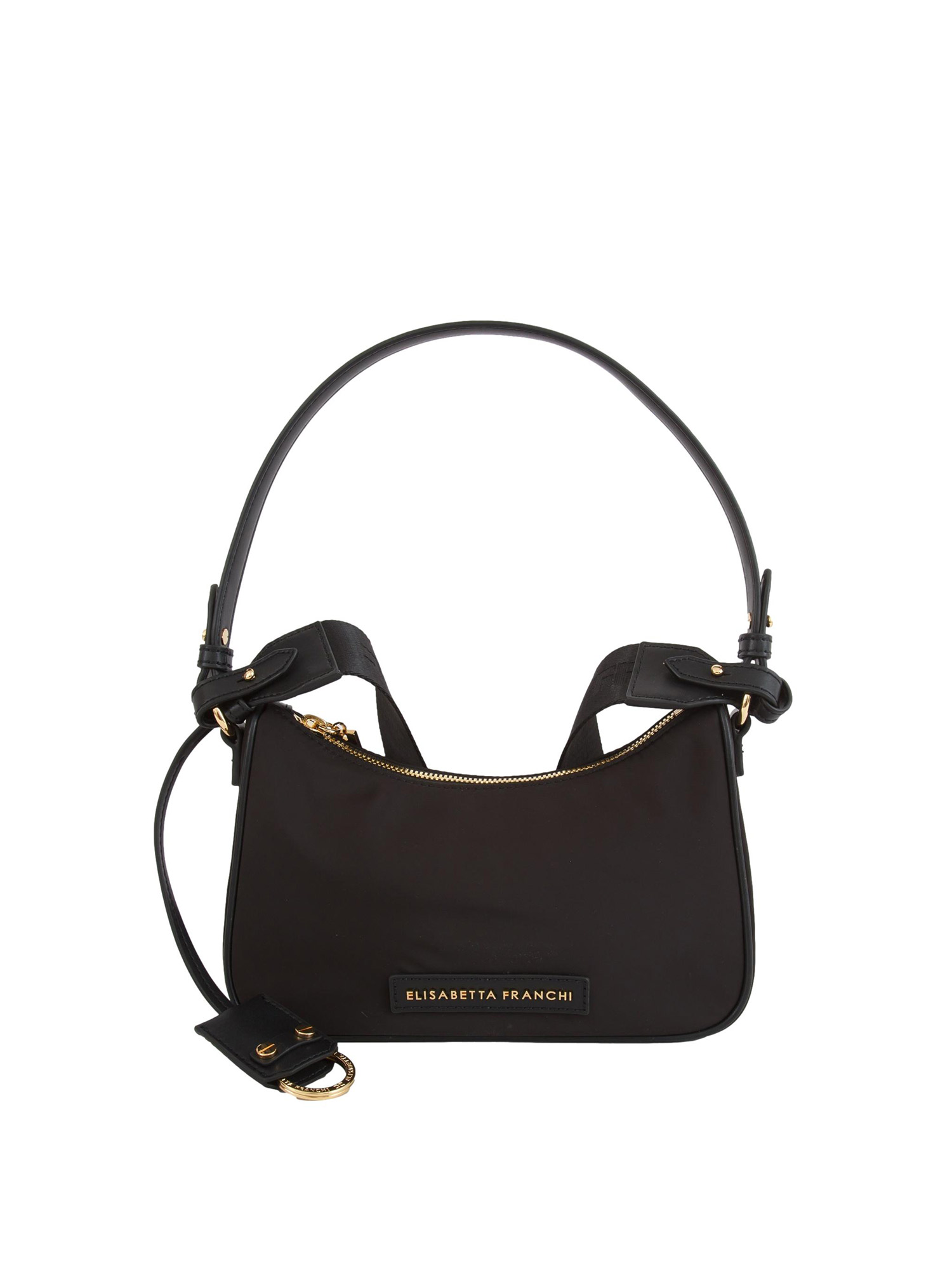 Borsa a spalla Elisabetta Franchi con manico regolare, arricchito dall'accessorio in tono con anella in metallo dorato. Chiusura con zip e tirazip. Logo al fondo.