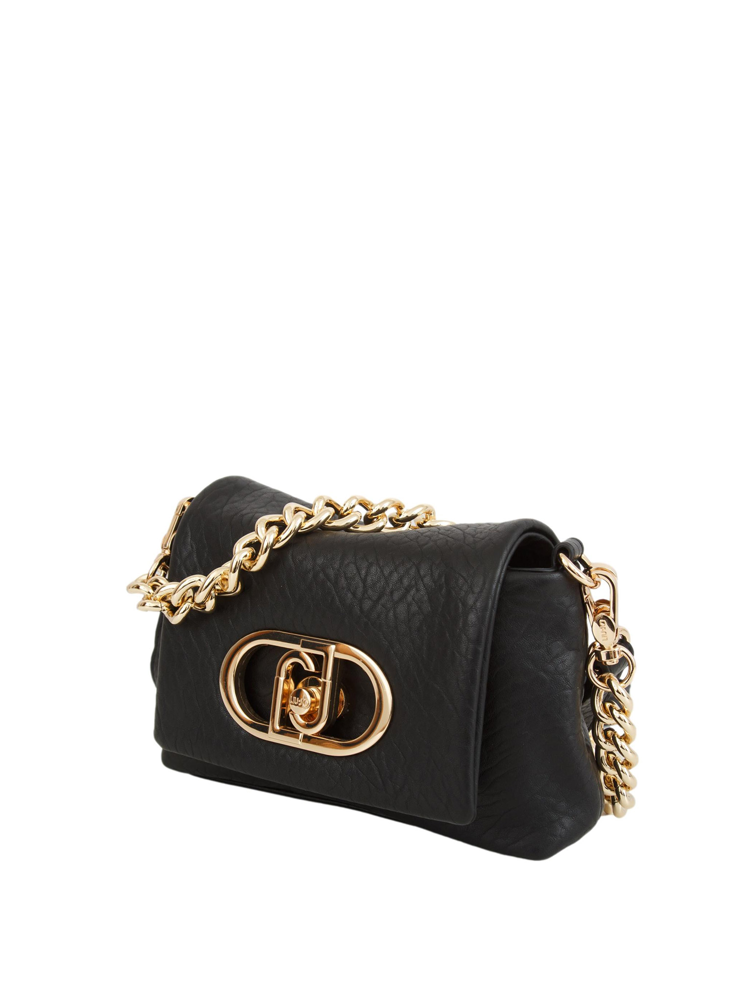 Borsa LaPuffy in ecopelle matelassé con manico rimovibile a catena e tracolla regolabile e rimovibile. La catena si può utilizzare anche come charm pendente sulla patta che si chiude con bottone magnetico. Misure: 19 x 6 x 13 cm.