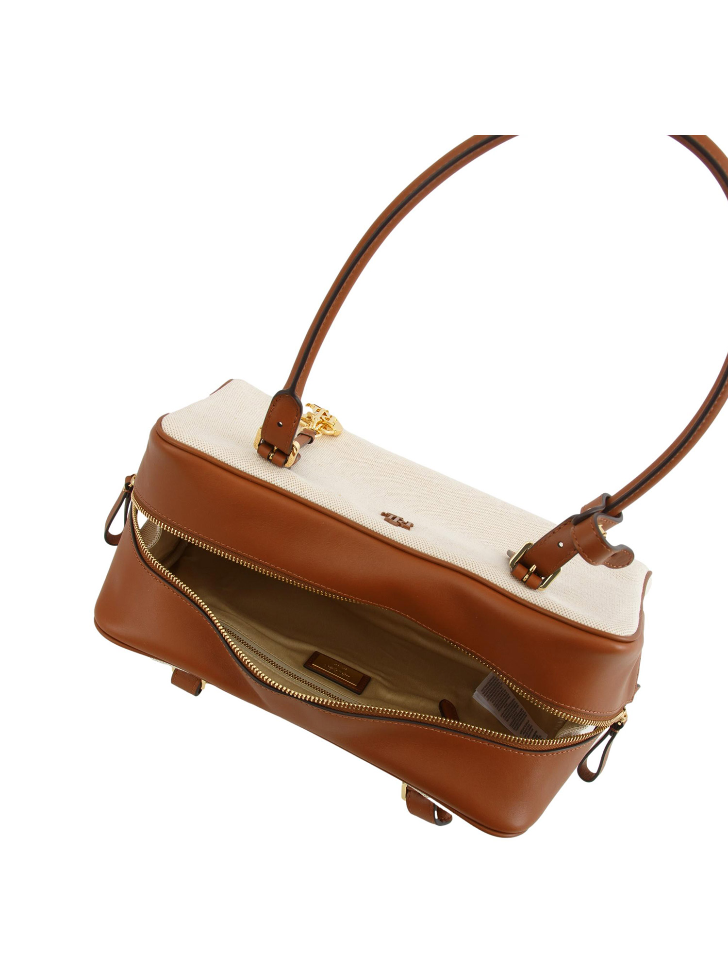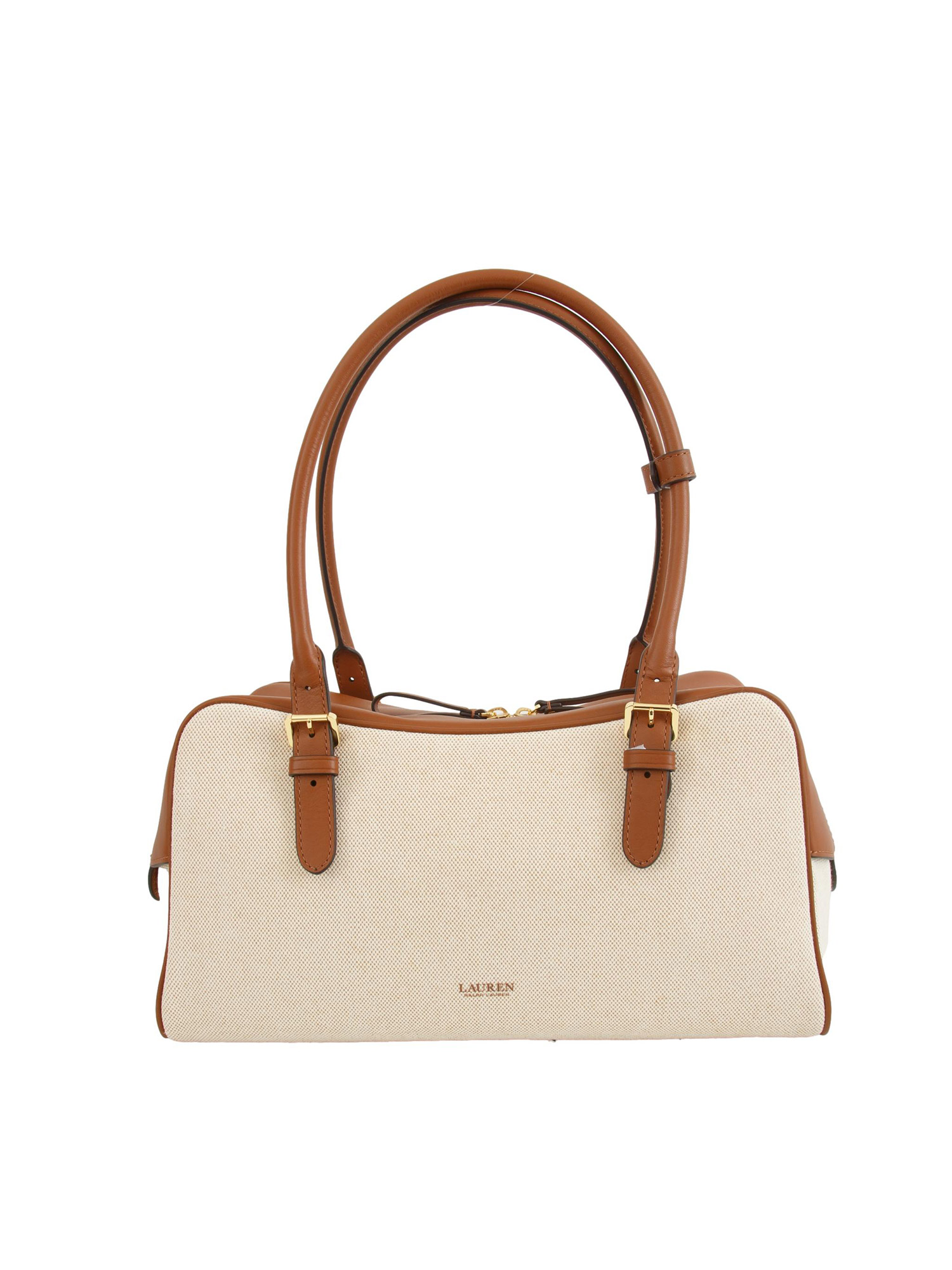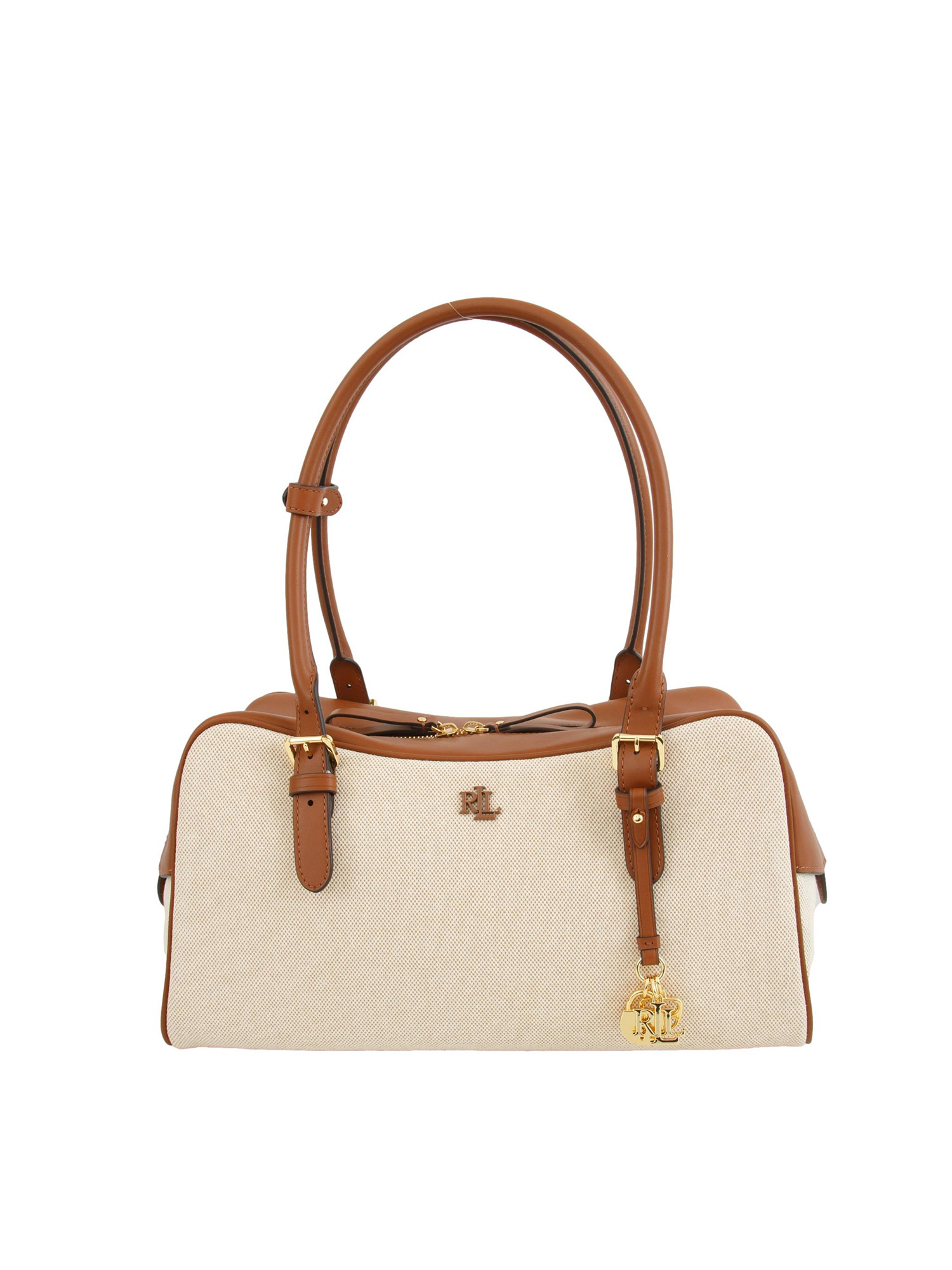 Borsa Marcy Ralph Lauren in tela di cotone beige e profili pelle cuoio