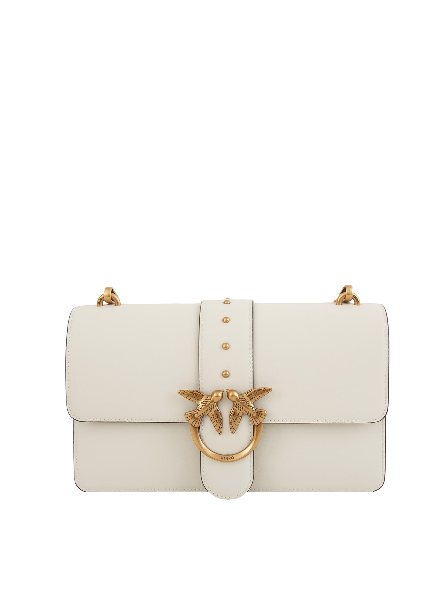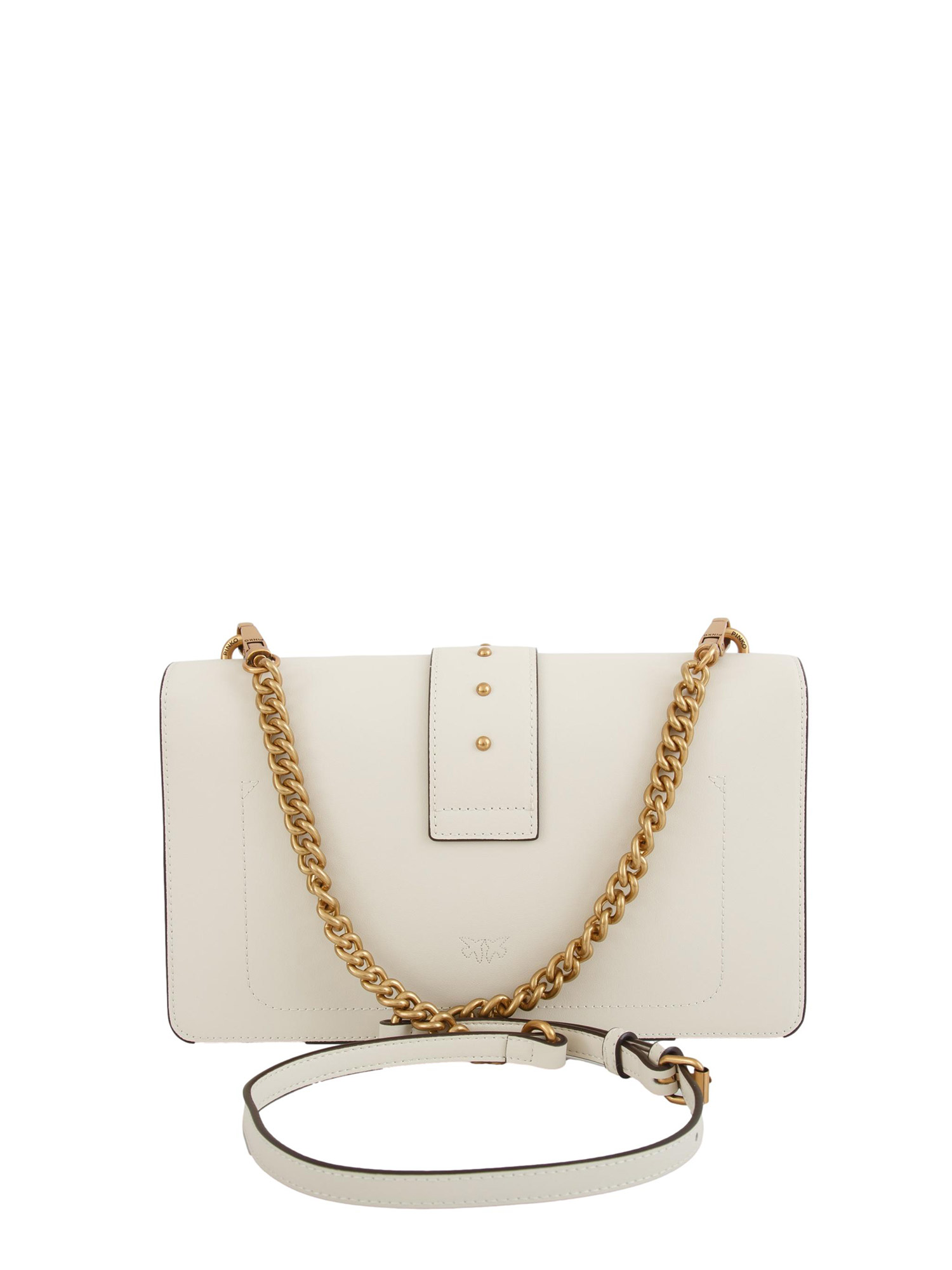 Borsa media Love Bag One Pinko in pelle dalla mano seta con tracolla regolabile e rimovibile in pelle e catena. Dotata di chiusura a baccello con bottone magnetico e fibbia Love Birds Diamond Cut. Iinterno foderato e tasca con zip per tenere al sicuro i tuoi essenziali. Dimensioni: 27x15x7 cm.
