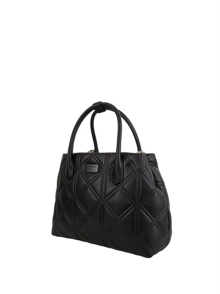 Borsa mini bag Emporio Armani in pelle bottalata nera con catena oro