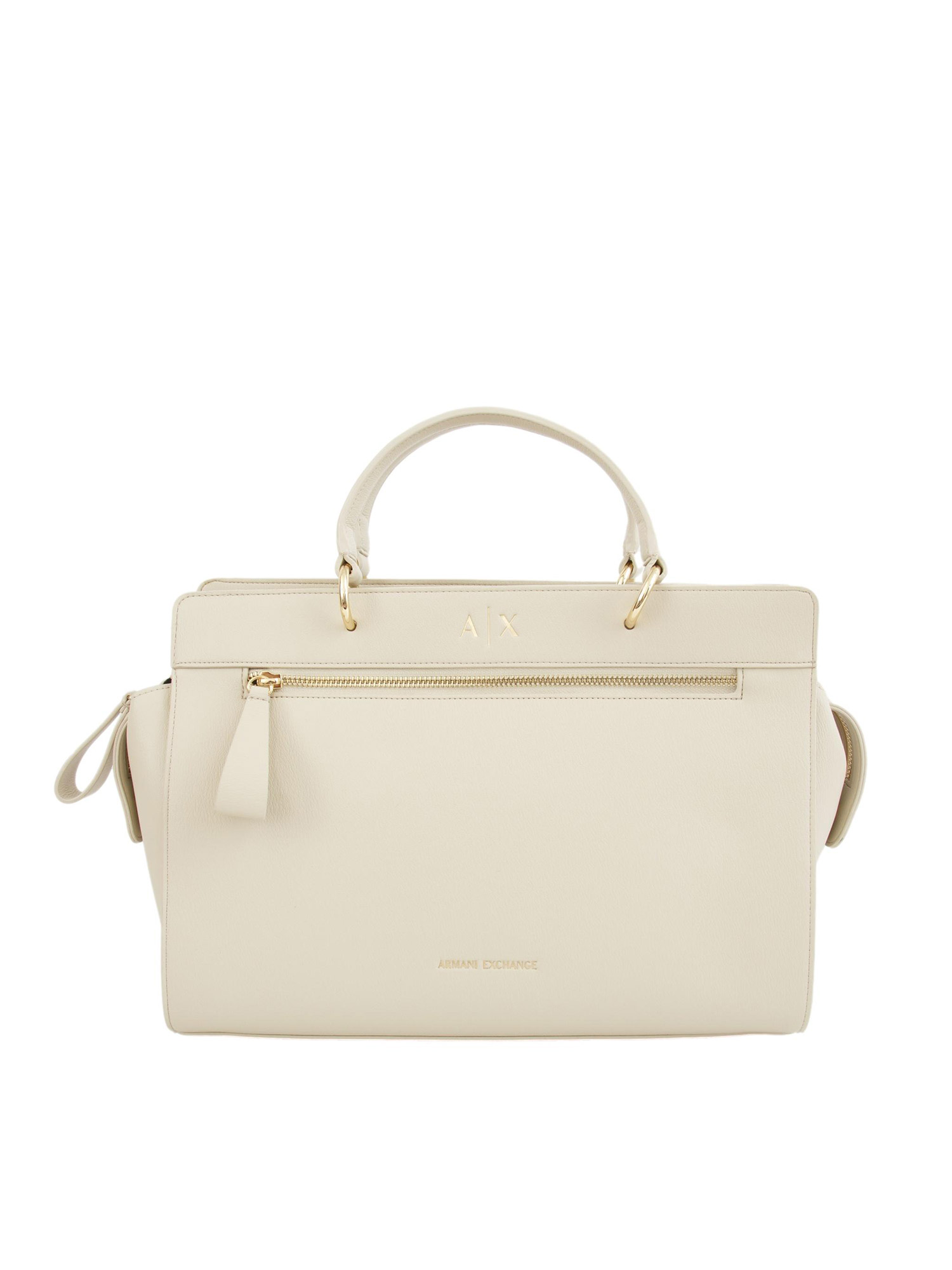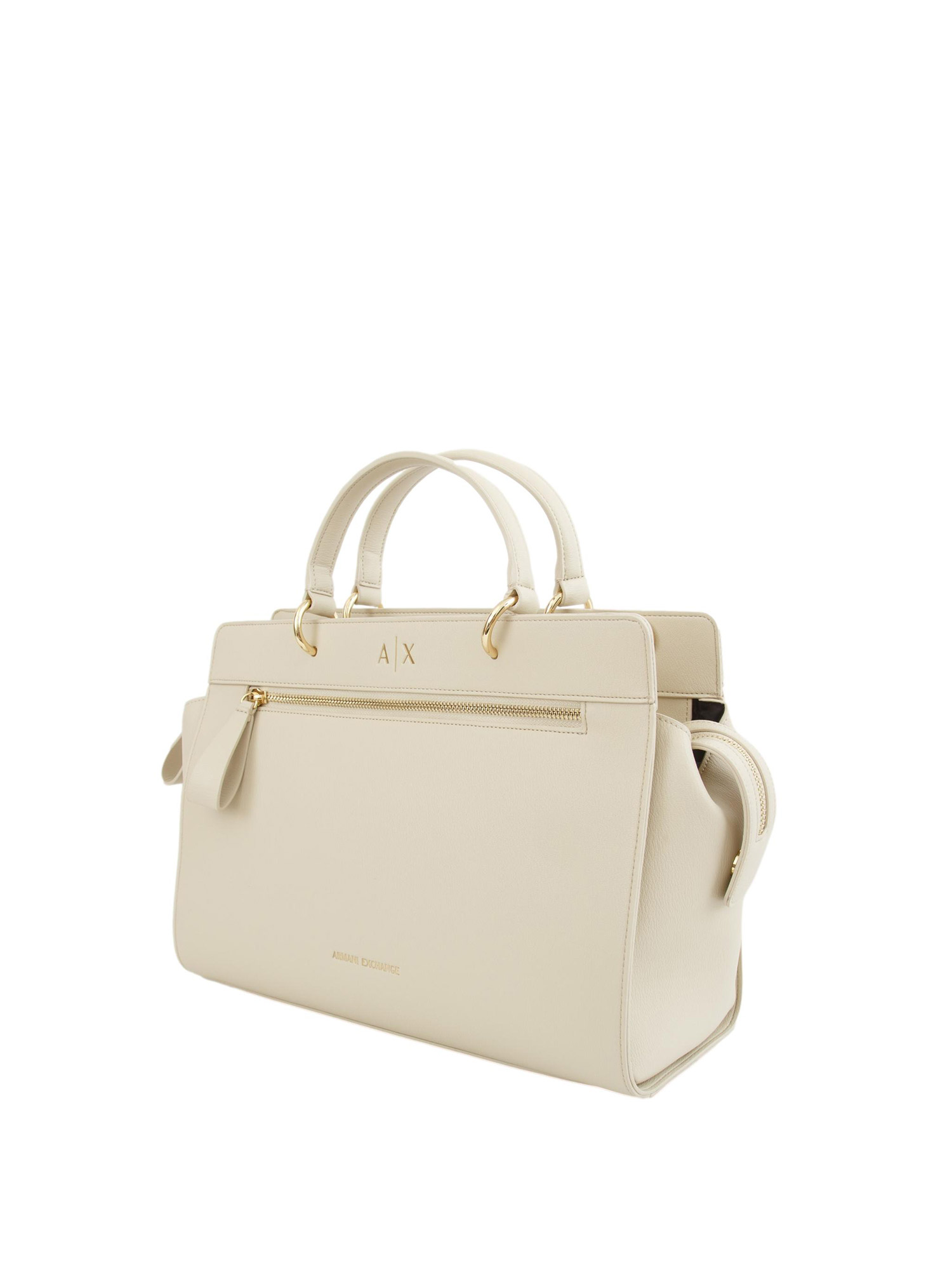 Borsa shopper Armani Exchange realizzata in pelle ecologica effetto martellato. Design dotato di maxi tasca frontale con chiusura zip oro, manici con gangi oro e tracolla. Comoda e spaziosa per portarla con te tutto il giorno senza dimenticare nulla dei tuoi oggetti essenziali. Misure: 34x24x15 cm.