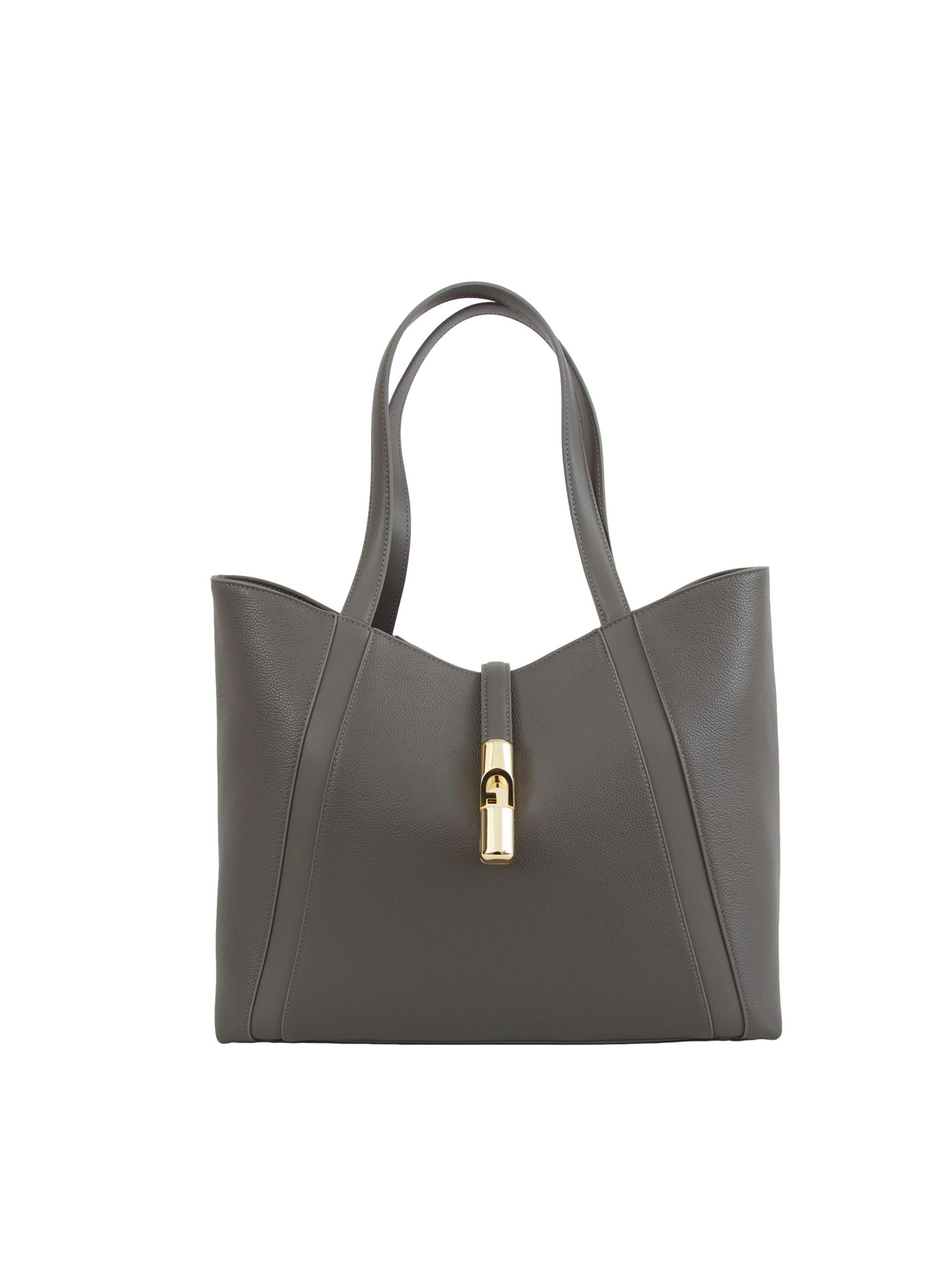 Super capiente nel formato ed elegante nella silhouette con orientamento orizzontale. Furla Goccia è la tote in pelle granata rifnita da dettagli in pelle liscia e impreziosita dall'hardware con logo Arco. Dimensioni: 33,5 x 31 x 11 cm.