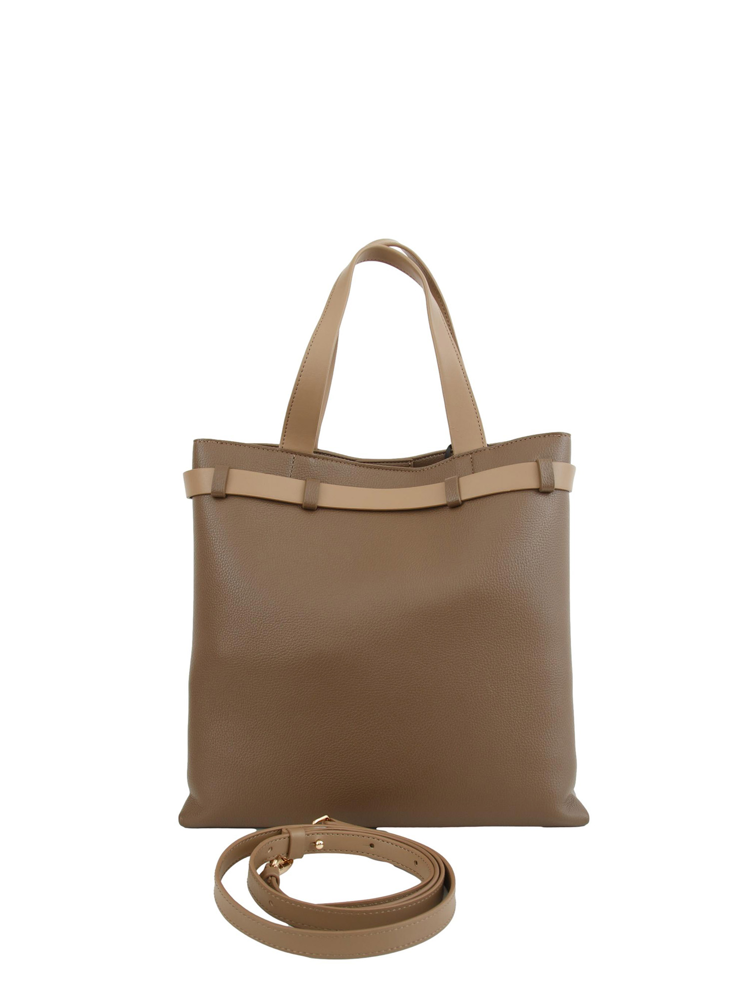Borsa verticale Marella in ecopelle taupe con cintura logo
