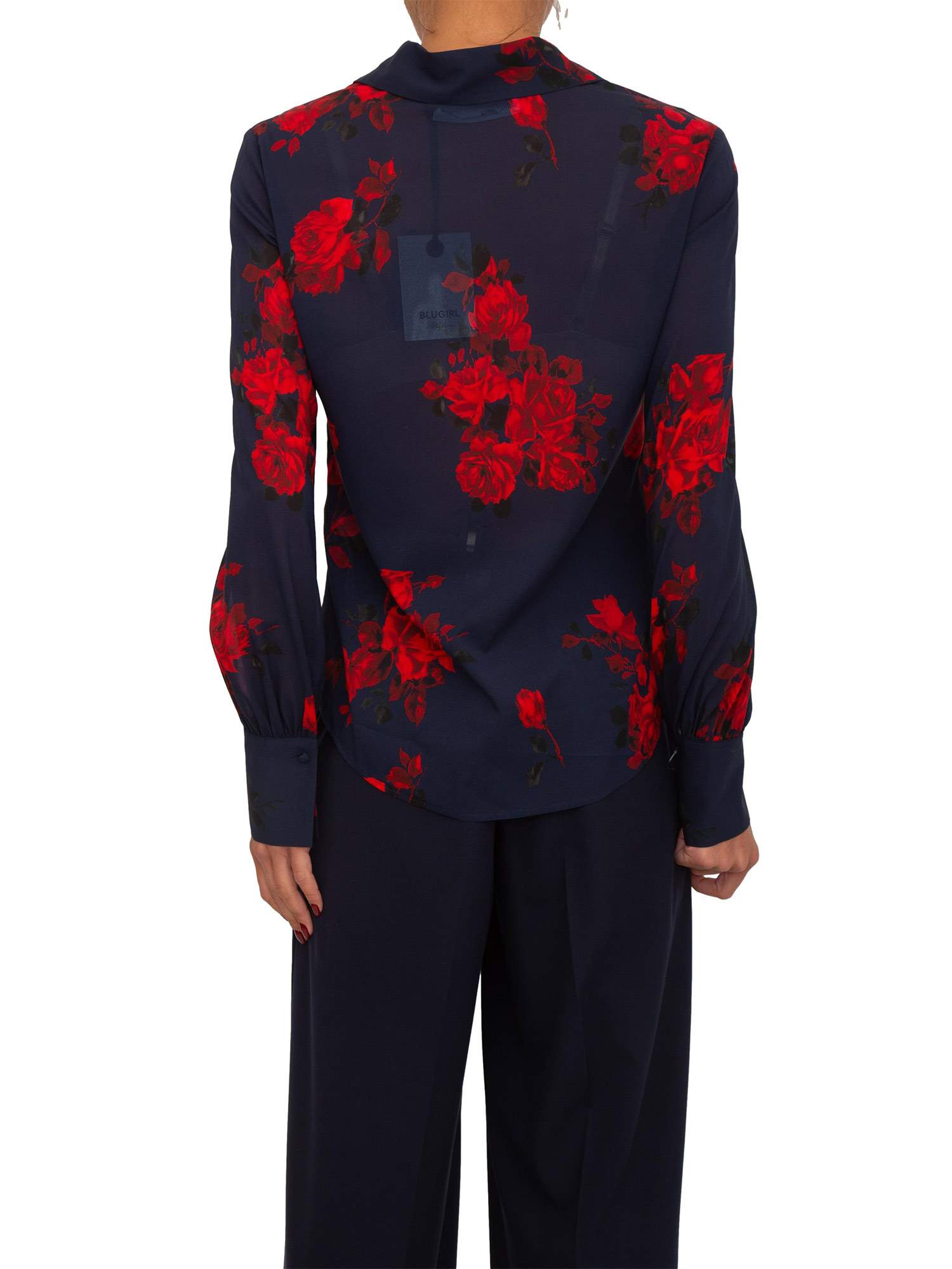 Camicia Blugirl in voile di seta blu con stampa floreale