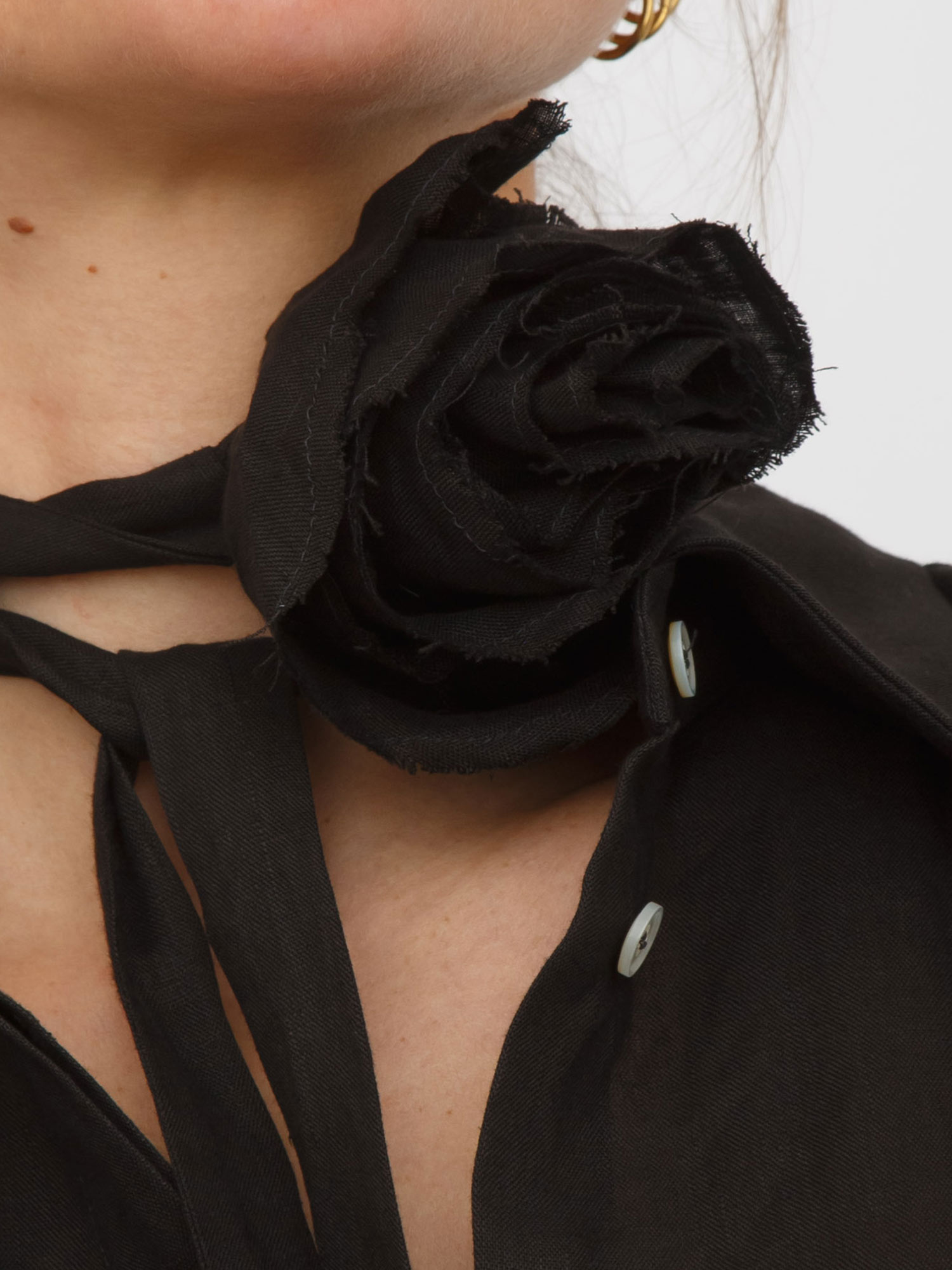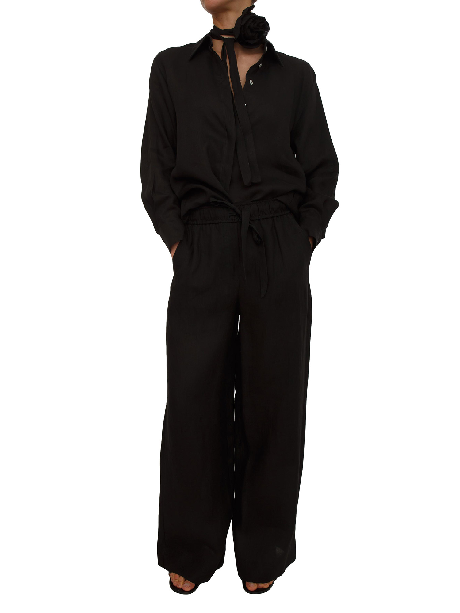 Indossa il capo iconico della bella stagione: la camicia Editore di Marella realizzata in puro lino diventa la compagna di mille look grazie alle nuance intense e alla sciarpina coordinata da annodare a piacere. La modella è alta 1.72 e indossa la taglia 38.