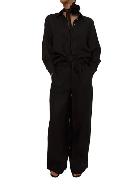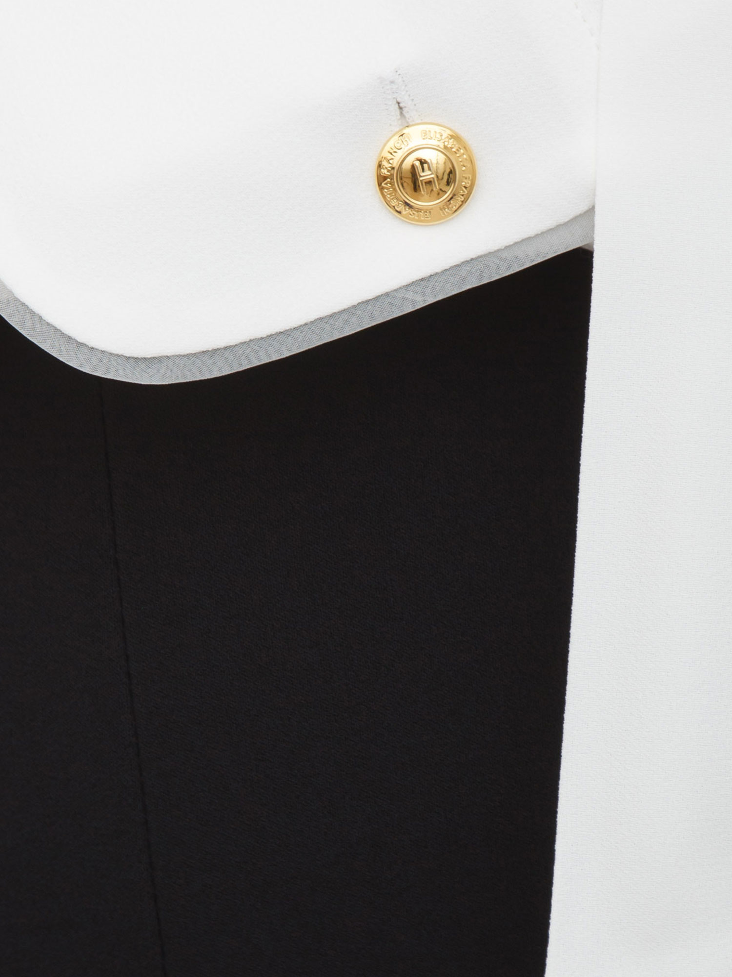 Camicia in georgette di viscosa Elisabetta Franchi con scollo a V e maniche lunghe. Si distingue per la fusciacca che incornicia il collo, impreziosita da placche in metallo dorato alle estremità. Rifinita con dettagli in organza che aggiungono leggerezza. Vestibilità regular. La modella è alta 1.72 e indossa la taglia 40.