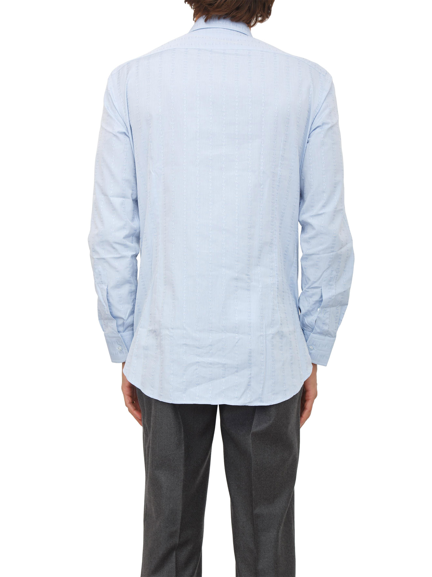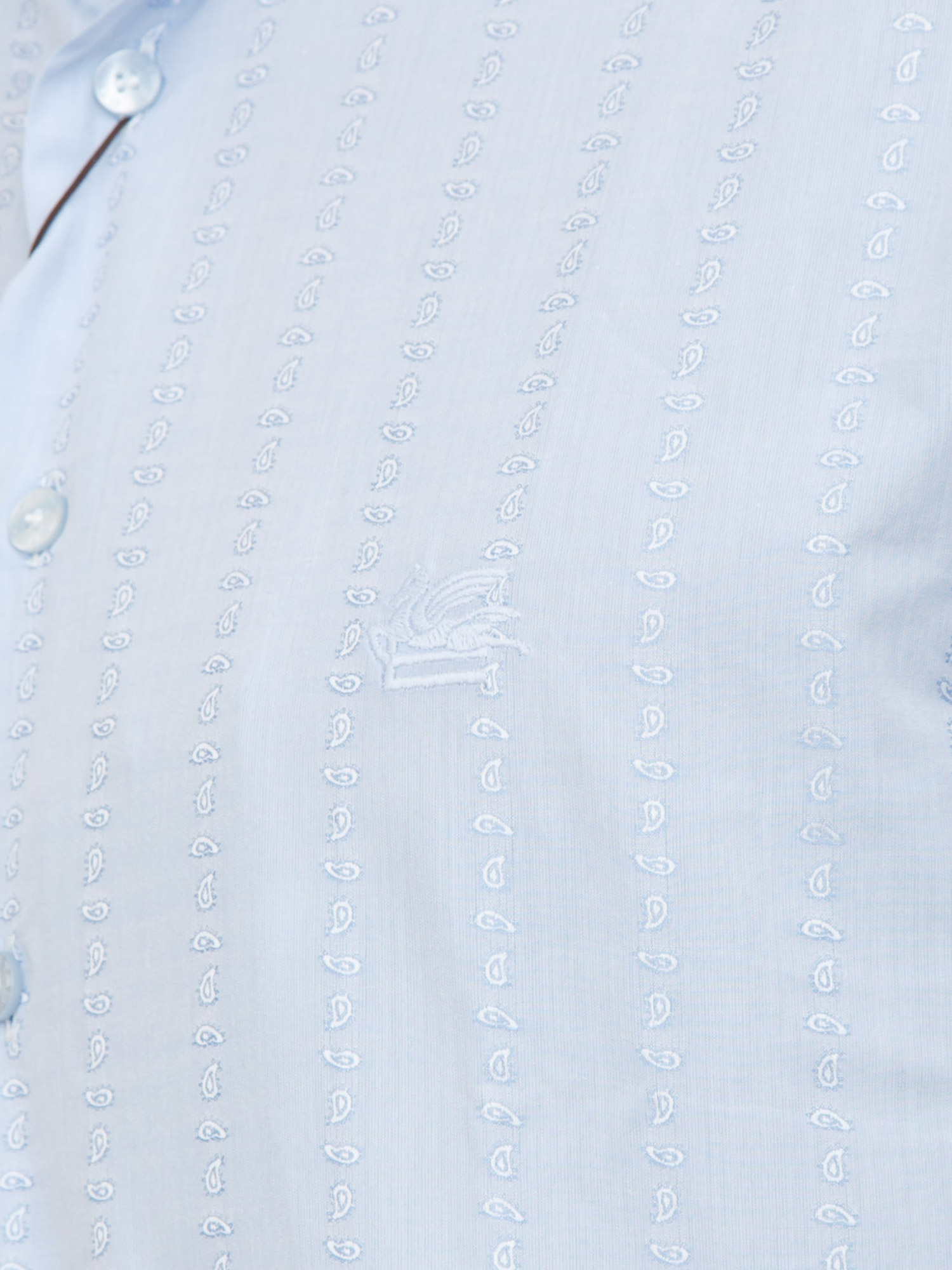 Camicia Etro uomo in cotone azzurro ricami Paisley tono su tono