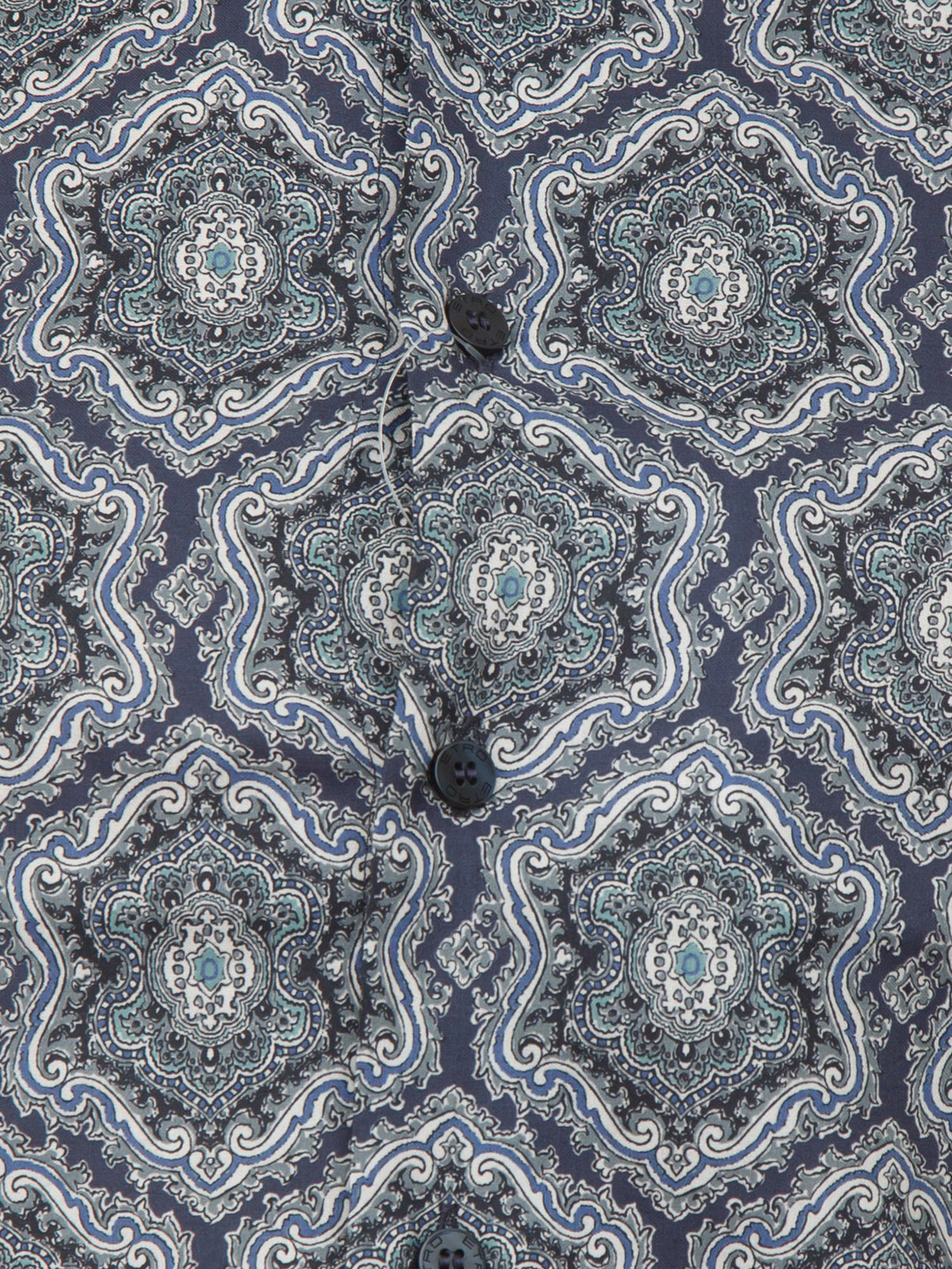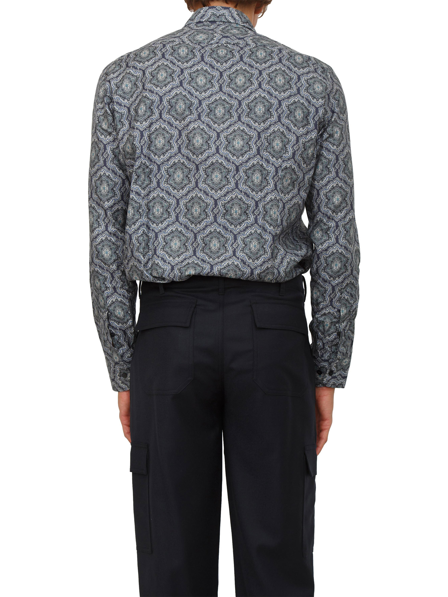 Camicia Etro uomo in rasatello di cotone con stampa astratta blu