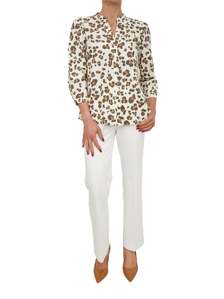 Camicia "Filante" IBlues realizzata in pregiata viscosa con fit regular, maniche lunghe e chiusura con bottoni metallici dorati. Il suo punto forte è la fantasia super-fashion con la quale ti permetterà di fare dei look pazzeschi. La modella è alta 1.72 e indossa la taglia 40.