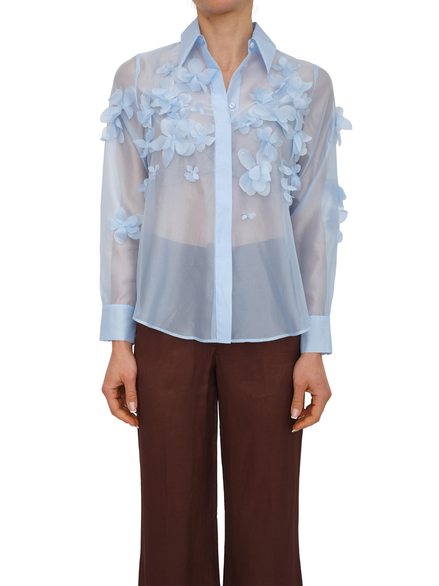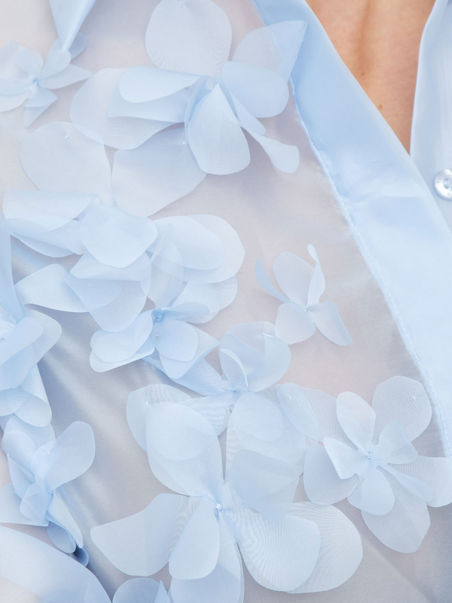 Camicia Frosty Nenette in organza azzurra con fiori 3D