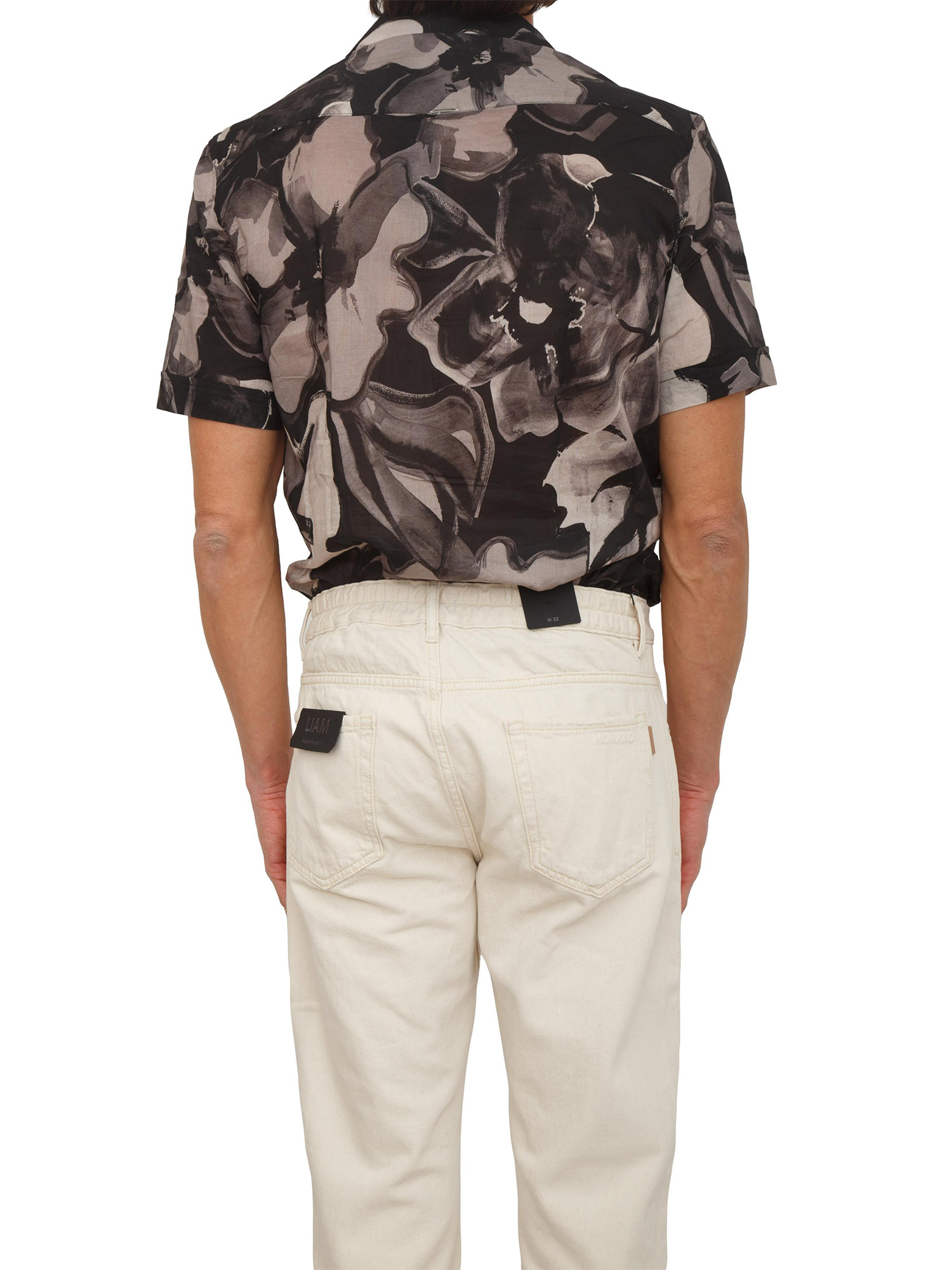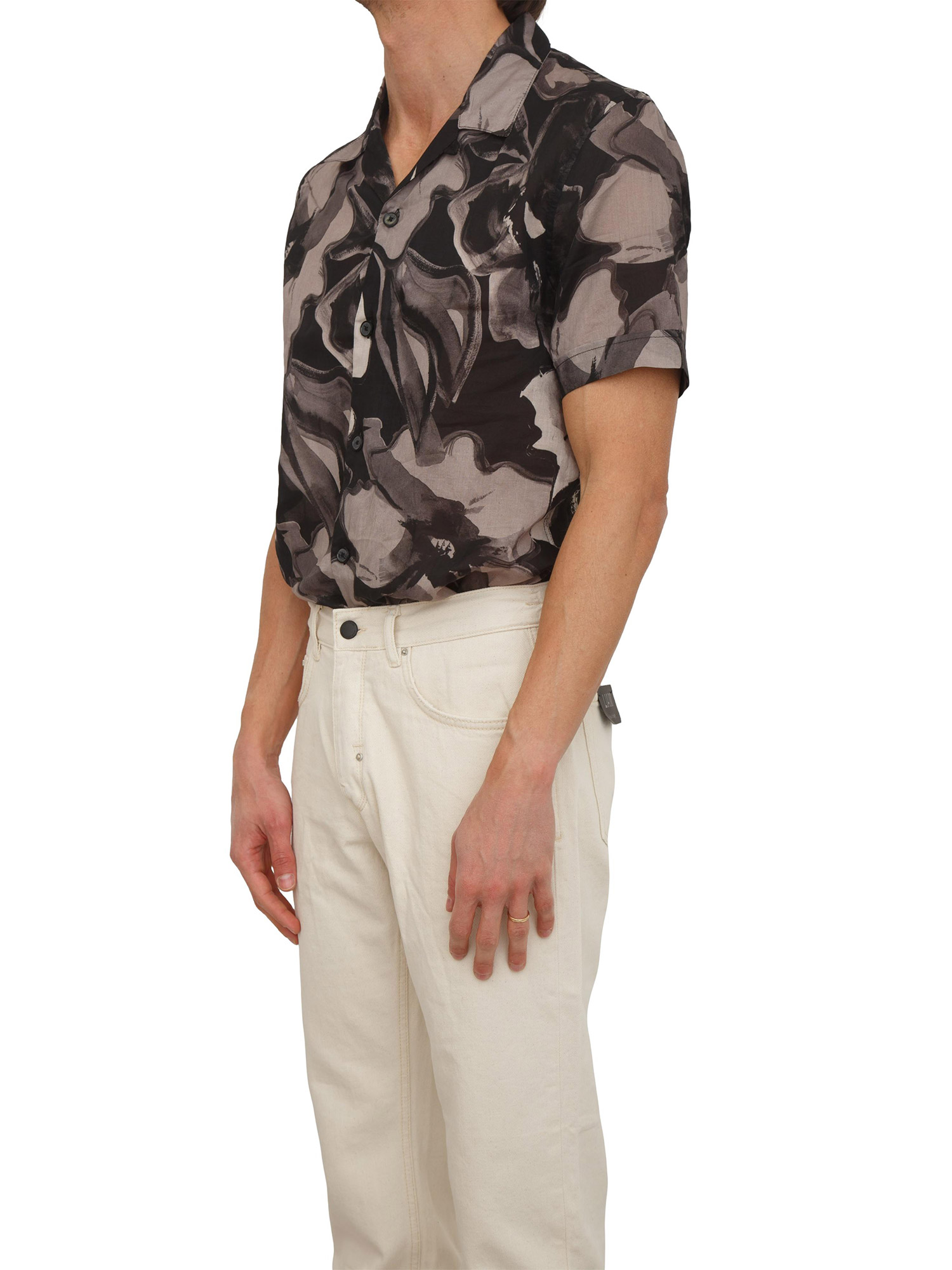 Camicia "Honolulu" Antony Morato realizzata in misto viscosa slub relaxed stright fit. Design a maniche corte con fantasia astratta che la rende perfetta per tutta l'estata. Da indossare da sola oppure sovrapposta ad una t-shirt. Il modello è alto 1.90m e indossa la taglia 48.