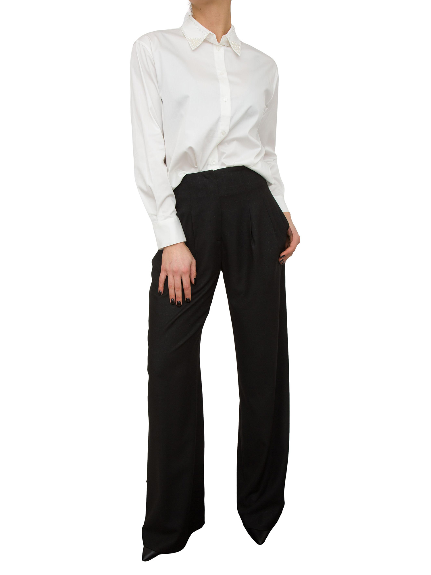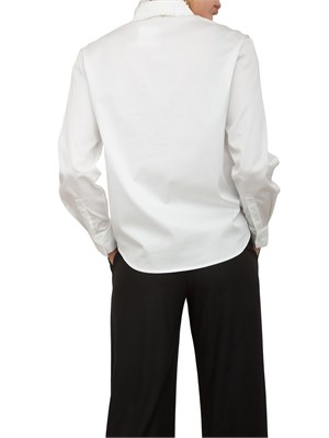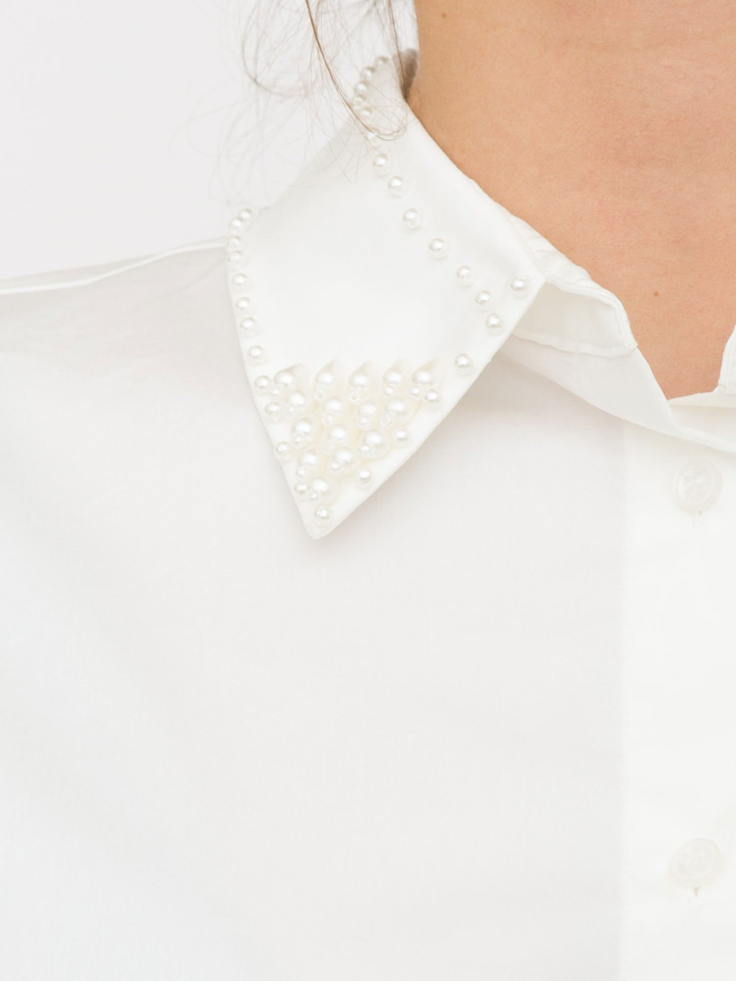 Raffinata camicia donna KOCCA realizzata in comodo misto cotone dal taglio classico e caratterizzata da dettagi in perla applicati sul colletto. Vestibilità regular e colletto con perle la rendono perfetta per look eleganti e bon ton o anche casual sopra un jeans.