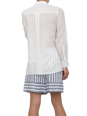 La camicia donna estiva Marella viene proposta con le lenti estetiche della contemporaneità: il risultato è un volume morbido sul busto, una lunghezza pensata per le sovrapposizioni, una delicata trasparenza protetta dai taschini al petto. Realizzata in tela di puro ramiè con fit regolare, collo a camicia, abbotonatura nascosta e taschini applicati al petto. Bellissima sia per un look casual che elegante. La modella è alta 1.72 e indossa la taglia 40.