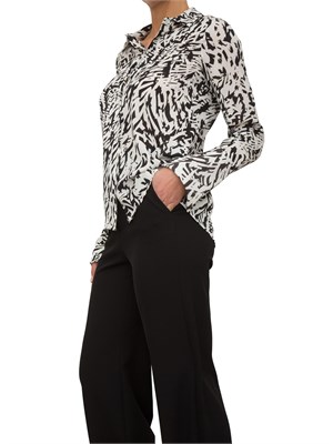 Fantasia bicolor astratta per la camicia a maniche lunghe di taglio maschile con vestibilità scivolata realizzata in georgette. Patrizia Pepe firma un capo di tendenza da indossare quotidianamente per uno stile fresco e attuale.